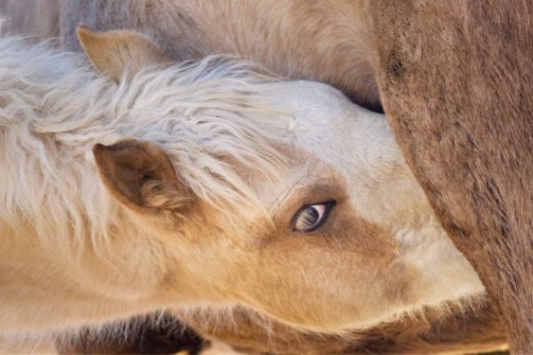Das Versorgen mit der Muttermilch ist in den ersten Lebensstunden des Fohlens besonders wichtig.