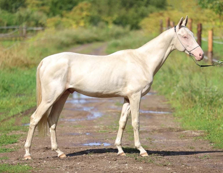 **For Sale: Akhal-Teke Horse** We are looking for a new home for a magnificent Akhal-Teke stallion from the Gundogar line, born in 2023. This stunning Isabella specimen has a height at the withers of 158 cm and is the result of careful breeding. Main features: - Breed: Akhal-Teke - Gender: Stallion - Year of birth: 2023 - Color: Cremello - Height at the withers: 158 cm - Origin: Quality breeding This horse is ideal for those seeking an elegant companion with great character. It is a breed known for its beauty, endurance, and intelligence. For more information and to arrange a visit, please do not hesitate to contact us. Don't miss the opportunity to add a unique specimen to your stable!
