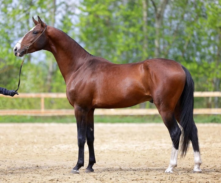 Stallion, born in 2020 at the Shamborant Stud Farm Current height: 163 cm Purebred Akhal-Teke (Mamdukh – Kharisa – Shaël). His sire was sold to Europe and is successfully competing in show jumping and eventing (see last photo). Broken at 3 years old. Received proper young horse training. Knows walk, trot, canter, and transitions. Was in work for one year. Then was sent to stud for breeding due to his good bloodlines. He produces excellent foals. Bright, very flexible and strong, with incredible intelligence and charisma — a talented personality. Healthy, no vices or bad habits. X-rays available from May 2023. Passport as a purebred breeding horse, fresh blood, vaccinations, microchip.