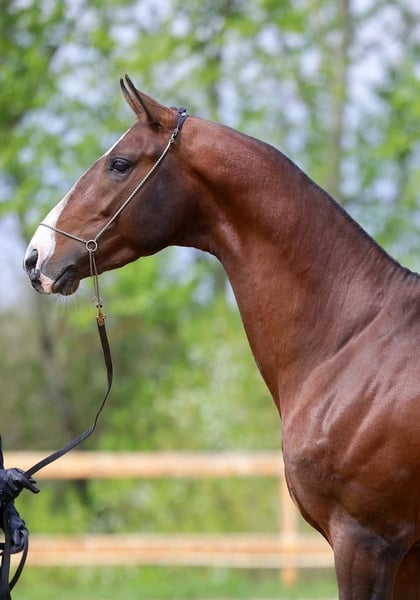 Wallach, geboren 2020 im Gestüt Shamborant Aktuelle Größe: 1,63 m Reinrassiger Akhal-Teke (Mamdukh – Kharisa – Shaël). Sein Vater wurde nach Europa verkauft und ist erfolgreich im Springen und Vielseitigkeit im Turniersport unterwegs (siehe letztes Foto). Er wurde mit drei Jahren angeritten. Erhielt eine fachgerechte Jungpferdeausbildung. Kennt Schritt, Trab, Galopp sowie Übergänge. War ein Jahr im Training. Anschließend wurde er aufgrund seiner guten Blutlinie zur Zucht an das Gestüt abgegeben. Er bringt ausgezeichnete Fohlen hervor. Helles, äußerst bewegliches und kräftiges Pferd mit beeindruckender Intelligenz und Charisma – eine talentierte Persönlichkeit. Gesund, ohne Macken oder schlechte Angewohnheiten. Röntgenbilder ab Mai 2023 vorhanden. Pferdepass als Zuchtpferd, frisches Blut, geimpft, mit Microchip.