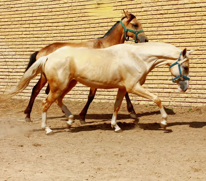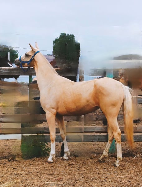 A gorgeous, large mare with a magnificent palomino color, all knee-high socks, and beautiful markings. She has excellent conformation and character, is even-tempered, calm, and well-trained. She spends a lot of time with the herd and receives all the necessary exercise. She has breeding papers and is suitable for any sport or breeding. We can arrange delivery and documentation.