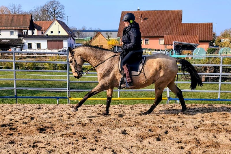 Unser Liski, ein Achal-Tekkiner von Jost und Urte Appel (Classic Performance Stud, Solms) eignet sich für Einsteiger und für alle anderen, die ein ruhiges und braves Distanzpferd wollen. In der Gruppe oder alleine bleibt er stets gelassen und unter Kontrolle. Er ist ein wertvoller Begleiter für Jungpferde, die ihre Ausbildung im Gelände beginnen. Genauso wie ein hervorragender Trainingspartner für die Pferde, die an der Spitze laufen müssen. Ruhig heißt nicht langsam. Das macht ihn auch für jeden Freizeitreiter, der viel mit dem Pferd unternehmen möchte, auf Wanderritte gehen, Reiturlaube machen oder Ausflüge mit dem Hänger, zum idealen Partner. Liski möchte noch nicht in Frührente, sondern mit seinem Reiter gerne raus ins Gelände und -auch wenn aus der Übung- für gymnastizierende Übungen auf den Platz. Er ist großrahmig, hat Raumgriff im Schritt und Trab und eine wunderbare Galoppade, die den Puls unten lässt. Er hat noch ein paar gute Jahre zu bieten, danach darf er gerne zurück zu uns und seinen Lebensabend genießen. Seine einzige Schwäche: das Ohren anlegen. Was haben wir dieses Verhalten vor Jahren beim Einreiten missverstanden. Er zeigt dadurch keinerlei Dominanz, sondern drückt sein Missfallen aus, wenn man zu forsch an ihn herangeht. Er braucht keinen temperamentvollen Reiter, der ständig unter Strom steht und hektisch fordert, sondern sucht die Gelassenheit auch bei seinem Menschen. Bist du der richtige?