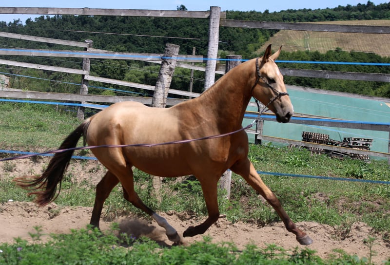 Joven pero bonito semental busca su hogar de un criador. Está creciendo en un establo en un pasto entre otros, por lo que está bien socializado. Se le puede trabajar en la cuerda con cabezada.