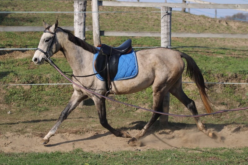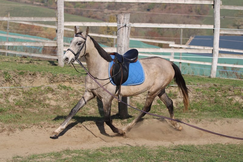 Elegancki młody akhal tekinner szuka nowego domu u hodowcy. Obecnie pracuje na lonży w siodle i uzdzie. Ma doskonały rodowód, co oznacza, że genetycznie jest nadzieją na przyszłość.