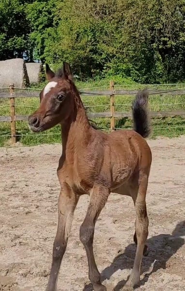 Veelbelovend volbloed Arabisch hengstveulen uit de allerbeste lijnen, zeer edel en typerend, zonder extreem te zijn, de toekomstige vrijetijdspartner en gezinslid voor alle situaties en disciplines, absoluut liefhebbend en vriendelijk karakter, eenvoudig in de omgang en leert zeer snel, hij houdt van mensen en geniet van menselijke aandacht, geen ongewenste gedragingen, leert net het veulen ABC, regelmatig ontwormd en tegen tetanus gevaccineerd bij het spenen (ongeveer oktober 2025).