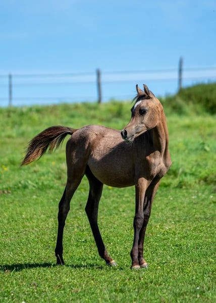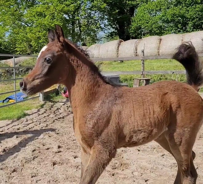 Promising Thoroughbred Arabian colt from the best lines, highly noble and typy, without being extreme, the future leisure partner and family member for all situations and disciplines, absolutely lovable and friendly character, uncomplicated in handling and learns very quickly, he loves people and enjoys human attention, no vices, currently learning the basics of being a foal, regularly dewormed and vaccinated against tetanus at weaning (approx. October 2025).