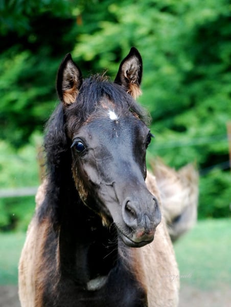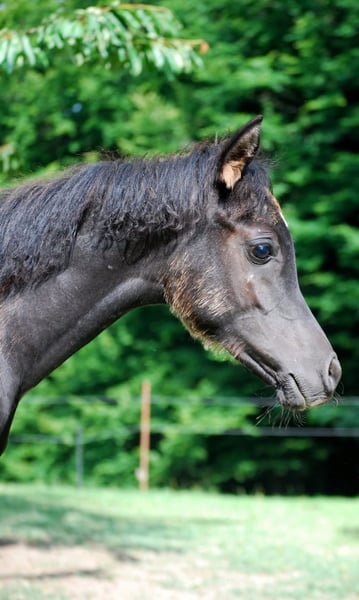 Absoluter Eyecatcher!!!!Einmalige Gelegenheit! Ein Traum in schwarz! Mona Lisa ist eine Jährlingsstute wie aus dem Bilderbuch: absolut korrekter Körperbau, super feines Gesicht mit riesigen schwarzen Augen, und schönem Dish! Rappe (4 schwarze Hufe, Flocke/ Stern auf der Stirn), unkompliziert im Umgang, sehr menschenbezogen und lernwillig. Mona Lisa ist absolut unkompliziert im Umgang. Sie wächst im Offenstall in Stutenherde auf. Top Abstammung und für die (Rapp-) Zucht sehr interessant! (Hadban Enzahi strain!) beide Elterntiere können vor Ort besichtigt werden. ( Internationale Nachzucht!) Aufgrund ihrer gelassenen und unkomplizierten Art wird sie auch als Reitpferd ihre Zukunft finden. Kein Notverkauf! Sie wird nur verkauft, da Fohlen aus der selben Anpaarung erwartet wird. Auf den letzten beiden Fotos ist ihr Vater zu sehen.