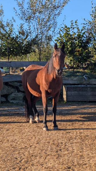 Zum Verkauf steht ein wunderschöner französisch polnischer Araber Wallach, geboren im Jahr 2013. Mit seinem eleganten, braunen Fell und einem Stockmaß von 144 cm ist er ein wahrer Blickfang. Dieser hübsche Wallach sucht seinen Menschen. Wir haben ihn letztes Jahr übernommen, da sein Pferdekumpel verstorben ist. Er ist kein Anfänger Pferd, nichts für Kinder. Er ist ein Rohdiamant und sucht jemanden, der ihm Grundsachen wieder bei bringt. Er hat schon vieles gelernt, aber da geht noch einiges mehr. Er wurde lange nicht mehr geritten, wir sind dabei ihn zu longieren und zweimal saß ich bereits drauf. Er hat sich brav gezeigt, blieb eher stehen als durch zu gehen. Er braucht einfach regelmäßige Arbeit, und das kann ich ihm leider aus gesundheitlichen Gründen nicht geben. Wenn er Vertrauen zu seinem Menschen hat, wird er bestimmt ein super Freizeitpferd. Er steht im Offenstall in einer gemischten Herde Im Preis enthalten ist ein englisch Sattel. geimpft und entwurmt. Bei Interesse oder weiteren Fragen stehe ich Ihnen gerne zur Verfügung.