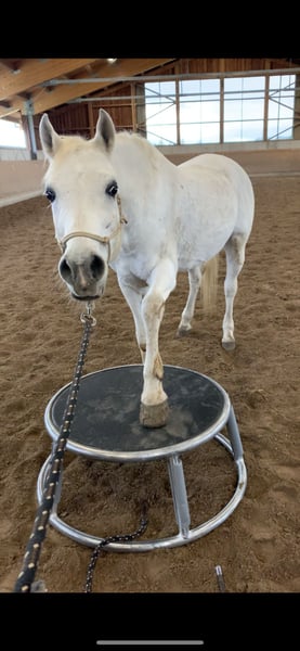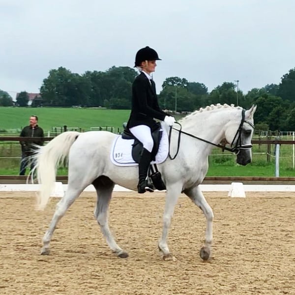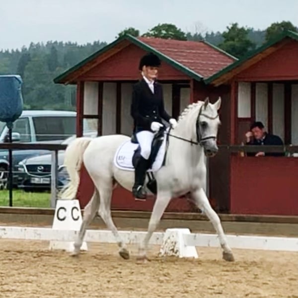 A Horse with a Heart of Gold Is Looking for a Home My striking gray gelding Bourhani Montashar OS is searching for a wonderful new home with someone who will cherish him. Monti has a charming personality and is a 100% reliable partner—completely contrary to the typical stereotype of his breed. It’s with a heavy heart that I’m offering him up, as I can no longer do justice to two horses, and my daughter rarely rides anymore. Monti stands approximately 152 cm at the withers, was born in 2007, and has been trained up to L/M level in dressage. He boasts a very good, pure Egyptian lineage. His calm energy and rock-solid behavior make him the perfect partner for trail riding or leisure riding. He is confident and relaxed whether riding alone or in a group, at the front or the back. He can easily be ridden by children and always behaves patiently, attentively, and reliably. He is also very playful and eager to learn, participating in everything from swimming and circus tricks to pulling a sleigh. He is also ridden with a halter and always strives to please. When performing circus tricks, he shows an incredible willingness to learn and picks up new skills very quickly. Monti has a beautiful, lively trot and can develop a lot of expression. He moves nicely in contact, responds excellently to subtle leg aids, and can be collected through seat aids—making him an ideal teacher for both children and more advanced riders looking to improve. He is also an absolute sweetheart in daily handling and has no issues with shoeing, vaccinations, or loading. He is shod in front, regularly treated osteopathically, and checked by the veterinarian. He has no health issues or complaints and is not prone to colic. Currently, he is kept in a free-range herd with 24-hour turnout on hay ad libitum and copes well with this. However, he would also thrive in a box stall with plenty of turnout. He is very social within his herd and has a middle-ranking position. He is very affectionate towards humans, whinnies when approached, and is always curious and attentive. Monti was used for many years as a show and breeding stallion and was stationed at the Main and State Stud Marbach before coming to me seven years ago. He was gelded then and has since enjoyed a life as a leisure horse. He has achieved some show successes, competed at various competitions, and has even completed a long-distance ride. The photos are from the past few years (the first picture shows him as a stallion). I am happy to send a current riding video upon request. I would be incredibly happy if YOU might become Monti’s new owner. Many greetings, Sarah