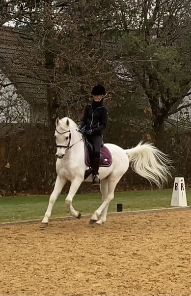 Ein Pferd mit einem Herz aus Gold sucht ein Zuhause Mein asiler Schimmelwallach Bourhani Montashar OS sucht ein wunderbares Zuhause bei seinem neuen Menschen. Monti hat einen bezaubernden Charakter und ist ein 100%iges Verlasspferd (ganz entgegen dem Klischee seiner Rasse). Ich gebe ihn schweren Herzens ab, weil ich zwei Pferden nicht mehr gerecht werden kann und meine Tochter nur selten reiten möchte. Monti hat ein Stockmaß von ca. 152cm, ist 2007 geboren, in der Dressur ausgebildet bis L/M und hat eine sehr gute, rein ägyptische Abstammung. Seine ruhige Energie und sein bombensicheres Verhalten machen ihn zum perfekten Partner im Gelände oder im Freizeitsport. Er geht alleine oder in der Gruppe, vorne oder hinten, immer souverän und entspannt. Er kann problemlos auch von Kindern geritten werden und verhält sich immer geduldig, zugewandt und sicher. Außerdem ist er für jeden Quatsch zu haben und von Schwimmen über Zirkustricks bis zu Schlittenziehen bei allem mit dabei. Er ist auch am Halsring zu reiten und möchte immer gefallen. Bei Zirkustricks zeigt er sich extrem lernwillig und begreift sehr schnell. Monti hat einen tollen, schwungvollen Trab und kann sehr viel Ausdruck entwickeln. Er geht schön in Anlehnung, reagiert super auf feine Schenkelhilfen und lässt sich über den Sitz versammeln - der perfekte Lehrmeister sowohl für Kinder als auch für fortgeschrittenere Reiter, die sich weiterentwickeln möchten. Monti ist auch beim täglichen Umgang ein absoluter Schatz und macht keinerlei Probleme beim Beschlagen, Impfen oder Verladen. Er ist vorne beschlagen und wird regelmäßig osteopathisch behandelt und zahnärztlich durchgecheckt. Er hat keinerlei Krankheiten oder Beschwerden und ist nicht anfällig für Koliken. Aktuell steht er im Offenstall 24h draußen mit Heu ad lib und kommt damit gut zurecht. Er würde sich aber auch in Boxenhaltung mit viel Koppelzeit wohlfühlen. Er ist in der Herde sehr verträglich und im Rang mittel. Dem Menschen gegenüber ist er sehr anhänglich, wiehert einem entgegen und ist immer neugierig und zugewandt. Monti war lange als Show- und Zuchthengst im Einsatz und auch im Haupt- und Landesgestüt Marbach stationiert, bevor er vor 7 Jahren zu mir kam, gelegt wurde und ein Leben als Freizeitpferd beginnen durfte. Er hat einige Show-Erfolge vorzuweisen, war oft auf Turnieren und ist schonmal einen Distanzritt gelaufen. Die Bilder sind gemischt aus den letzten Jahren (auf dem ersten Bild war er noch Hengst). Ein aktuelles Reitvideo sende ich auf Wunsch gerne zu. Ich würde mich unglaublich freuen, wenn DU vielleicht Montis neue Person werden möchtest. Viele Grüße, Sarah