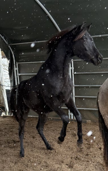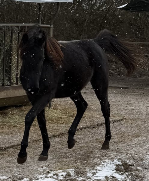 BES Iyasha ist für mich der positive Inbegriff eines Arabers. Einfach wunderschön, ausdrucksstark, bewegungsfreudig, aber klar im Kopf. charakterlich entsprechend sensibel, vorsichtig, fühlt jede Stimmung, ist sofort da, wenn es mir nicht gut geht. Ich wollte ihn eigentlich für mich behalten, habe aber das Gefühl, dass er gerne jemanden nur für sich hätte, für den er das ein und alles ist. Daher geht er nur, wenn alles passen sollte. Er hat die grazile Schönheit seines Vaters Ishad bekommen. Seine Mutter Soraya ist eine ausgeglichene Stute, die ihren Fohlen Selbständigkeit mit klarem Kopf vererbt und beim Reiten ein tolles Geländepferd ist. Er lebt in einer gemischten Herde 24/7 Heuraufe, 365 Tage Offenstall. Offenstall mit genügend Bewegungsmöglichkeiten und Pferdekumpels setze ich voraus. Erfahrung im Umgang mit dieser Rasse und Jungpferden wären auch nicht falsch. Über nette, ernstgemeinte Anfragen mit kurzer Selbstvorstellung, Info über Pläne und Haltung freuen wir uns. Bei Fragen bitte einfach melden. WhatsApp: 01729919663