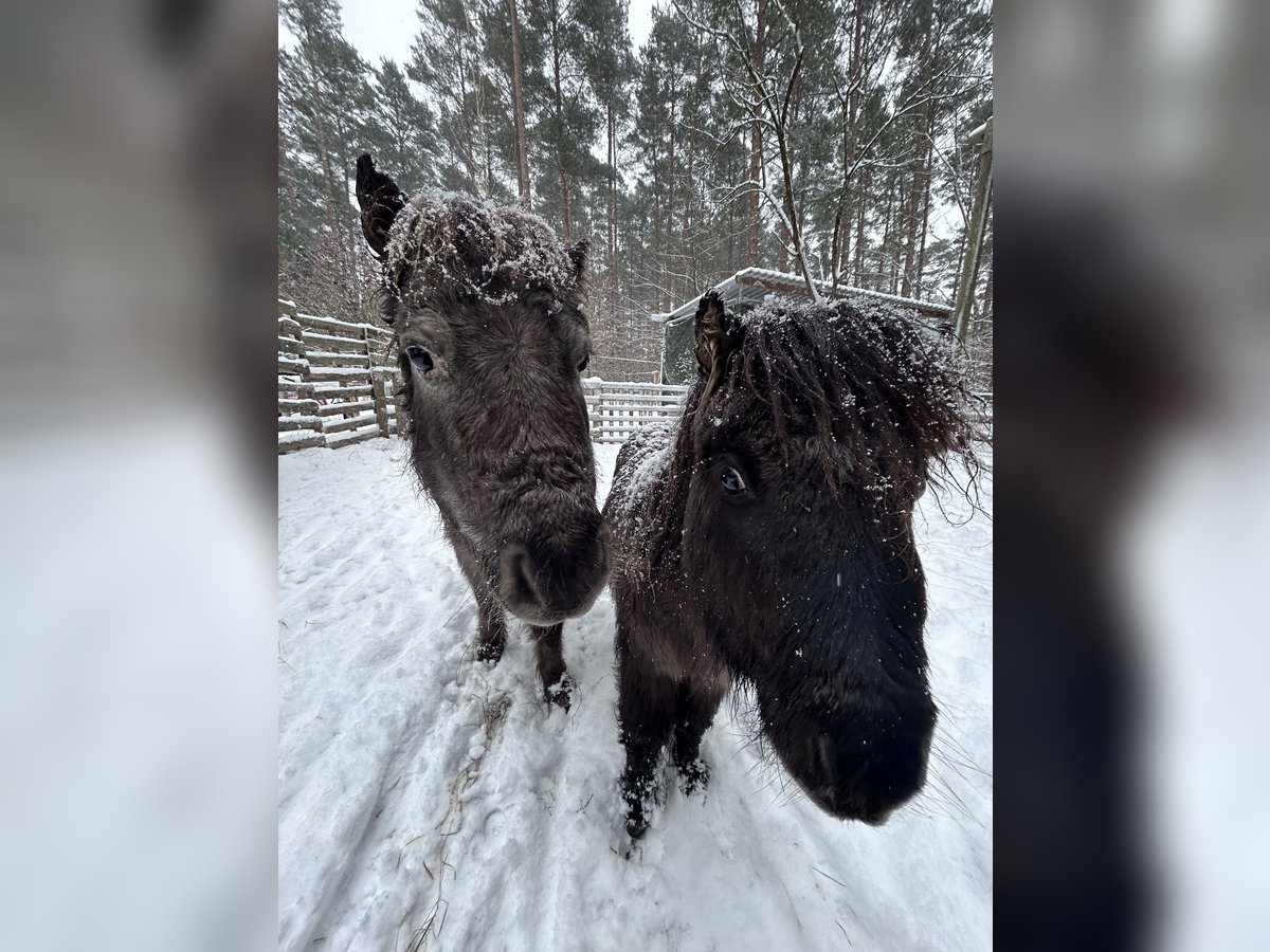 Zum Verkauf steht eine sehr liebe und vielseitige Amerikanische Miniatur Horse Stute, geboren 2018 (7 Jahre alt), inklusive ihres Fohlens(auch getrennt möglich) Die Stute ist geritten und gefahren, kennt Longieren und beherrscht bereits einige Kunststücke. Sie ist sehr arbeitswillig, aufmerksam und überzeugt durch ihren tollen, ausgeglichenen Charakter. Insgesamt hatte sie bereits zwei Fohlen. Im Umgang ist sie absolut unkompliziert: artig beim Schmied, brav beim Verladen und insgesamt sehr menschenbezogen. Das Fohlen ist aktuell 9 Monate alt. Der Vater ist ein Shetlandpony. Auch das Fohlen ist bereits artig beim Schmied und stand schon mehrmals auf dem Hänger. Es kennt Spaziergänge, zeigt sich dabei mutig, neugierig und ist zudem sehr verschmust und kontaktfreudig im täglichen Umgang. Beide sind Farbwechsler und im Winter dunkler als im Sommer. Zubehör kann mitgegeben werden. Diese Mutter-Tochter-Kombination eignet sich ideal für Freizeit, Zucht oder als liebevolle Familienponys.