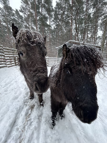 À vendre, une jument américaine miniature très douce et polyvalente, née en 2018 (âgée de 7 ans), accompagnée de son poulain (possibilité de vente séparée). La jument est montable et conduite, elle connaît le travail à la longe et maîtrise déjà quelques tricks. Elle est très volontaire, attentive et se distingue par son caractère équilibré et agréable. Elle a déjà eu deux poulains à son actif. En ce qui concerne le comportement, elle est totalement facile : elle est respectueuse avec le maréchal-ferrant, calme lors du chargement et très sociable avec les humains en général. Le poulain a actuellement 9 mois. Son père est un poney Shetland. Le poulain est également déjà calme lors du maréchal-ferrant, il a déjà été plusieurs fois dans une remorque. Il connaît les promenades, se montre courageux, curieux, et est très câlin et sociable dans la vie quotidienne. Les deux changent de couleur selon la saison, étant plus foncés en hiver qu’en été. Des accessoires peuvent être inclus. Cette mère et son fils constituent une excellente paire pour la loisir, l’élevage ou comme poneys familiaux affectueux.