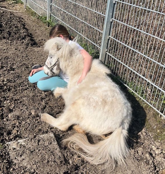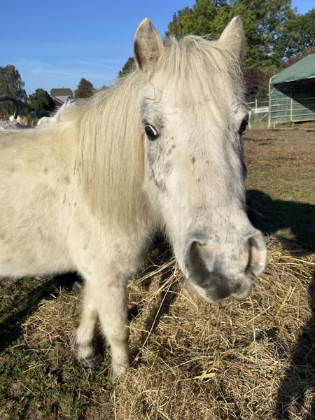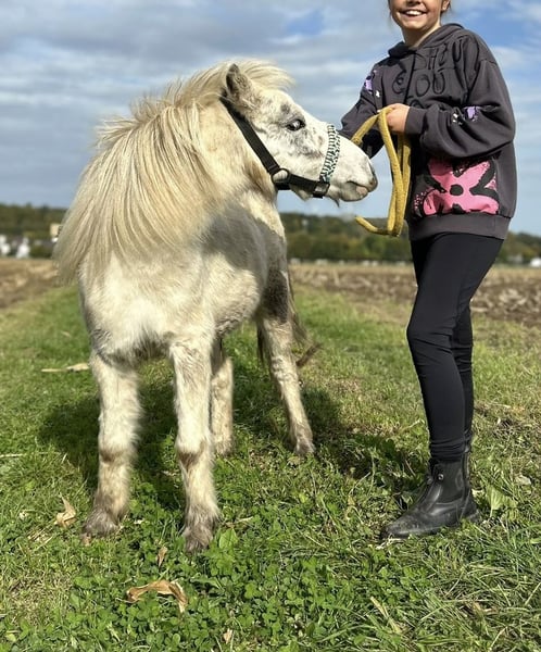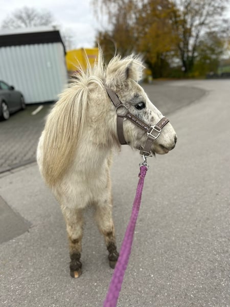 Zum Verkauf steht ein charmantes American Miniature Horse Wallach, geboren im Jahr 2019. Mit einem Stockmaß von 100 cm und seiner auffälligen Farbe und mit seinem Blau in einem Auge ist er ein echter Blickfang! Dieser liebevolle und gut erzogene Wallach eignet sich hervorragend zum Fahren und bringt viel Freude und Spaß mit sich. Lio(so nennen wir ihn) ist seit Fohlenalter bei uns auf dem Ponyhof. Er kennt es, kleine Kinder auf seinem Rücken zu tragen und ist dabei eher flott als stur. Außerdem kann man ihm auch unheimlich viel beibringen. Er stand jetzt über ein Jahr eine Mädchen zur Verfügung, und sie hat ihm viel beigebracht. Er ist kerngesund, und außer seiner regelmäßigen Tetanusimpfung hat er noch nie einen Tierarzt kennen gelernt. Ich wünsche mir ein zu Hause für ihn, wo er noch viel gefördert wird und vielleicht vor einer kleinen Kutsche geht. Die Kinder hier hatten viel Spaß, unter anderem mit Inlinern mit ihm zu fahren. Im Sommer ist der Tag und Nacht auf der Weide. Natürlich sollte bei so kleinen Ponys die Weide nicht zu fett sein. Momentan ist er auch etwas dick. Ich verkaufe ihn nur, da ich leider nicht jünger werde und ich die Anzahl meiner Ponys langsam etwas verringern muss. Sie können ihn gerne kennen lernen, wofür ich allerdings 30 € berechne, da ich die Erfahrung gemacht habe, dass einige Leute so ein Kennenlernen als reines Ausflugsziel nutzen. Ich freue mich auf Anfragen. PS: gegen einen kleinen Aufpreis bekommt er Zubehör mit