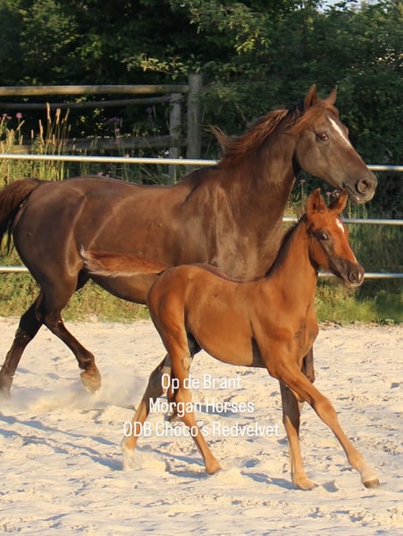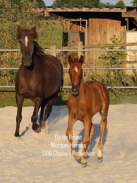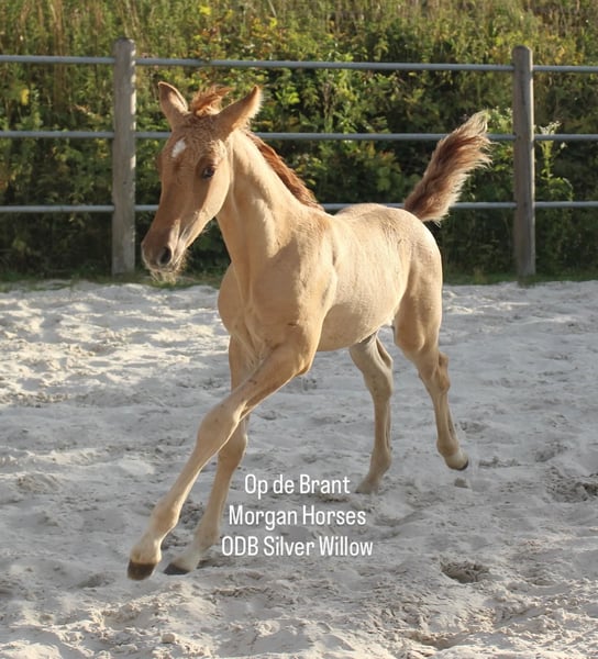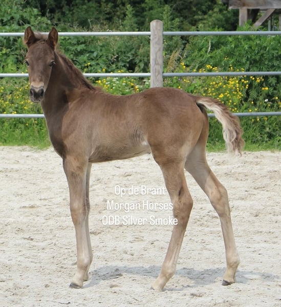 This year, we welcomed five beautiful colt foals. All of them are looking for a new home. Their sire is our American Morgan Horse stallion Schaenzer’s Silver Lining, a gelding with a very gentle and cooperative temperament. RESERVED 100% Morgan Horse ODB Silver Smoke (Smokey) Born May 3, 2025 Gelding Mother: EMMH Beloved Mulan Sire: Schaenzer’s Silver Lining Color: Smokey Silver Black 50% Morgan Horse, 50% Pinto Silver Glow Born May 6, 2025 Gelding Mother: Indy Sire: Schaenzer’s Silver Lining Color: Silver Bay 100% Morgan Horse ODB Silver Willow Born May 27, 2025 Gelding Mother: BMH Turbo Twinky Sire: Schaenzer’s Silver Lining Color: (Silver) Red Dun 100% Morgan Horse ODB Choco’s Red Velvet Born June 1, 2025 Gelding Mother: BMH Belle Choco Sire: Schaenzer’s Silver Lining Color: Chocolate 100% Morgan Horse ODB Kick Up The Dust Born June 24, 2025 Gelding Mother: Landmaat’s Milady Sire: Schaenzer’s Silver Lining Color: Red Dun 100% Morgan Horse ODB Silver Blossom Born May 10, 2024 Mare Mother: Landmaat’s Milady Sire: Schaenzer’s Silver Lining Color: Red