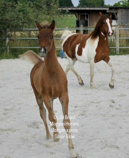 Dit jaar kregen wij 5 prachtige hengstveulens. Ze zoeken allemaal een nieuw huis. Vader is onze American Morgan Horse hengst Schaenzer’s Silver Lining. Een hengst met een heel lief en meewerkend karakter. RESERVIERT 100% Morgan Horse ODB Silver Smoke (Smokey) Geboren 3 mei 2025 Hengst Moeder EMMH Beloved Mulan Vader Schaenzer’s Silver Lining Kleur: Smokey Silver Black 50% Morgan Horse 50%pinto Silver Glow Geboren 6 mei 2025 Hengst Moeder Indy Vader Schaenzer’s Silver Lining Kleur: Silver Bay 100% Morgan Horse ODB Silver Willow Geboren 27 mei 2025 Hengst Moeder BMH Turbo Twinky Vader Schaenzer’s Silver Lining Kleur: (silver) Red Dun 100% Morgan Horse ODB Choco’s Red Velvet Geboren 1 juni 2025 Hengst Moeder BMH Belle Choco Vader Schaenzer’s Silver Lining Kleur: Choco 100% Morgan Horse ODB Kick Up The Dust Geboren 24 juni 2025 Hengst Moeder Landmaat’s Milady Vader Schaenzer’s Silver Lining Kleur: Red Dun 100% Morgan Horse ODB Silver Blossom Geboren 10 mei 2024 Merrie Moeder Landmaat’s Milady Vader Schaenzer’s Silver Lining Kleur: Red