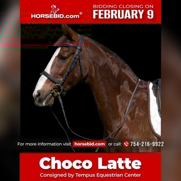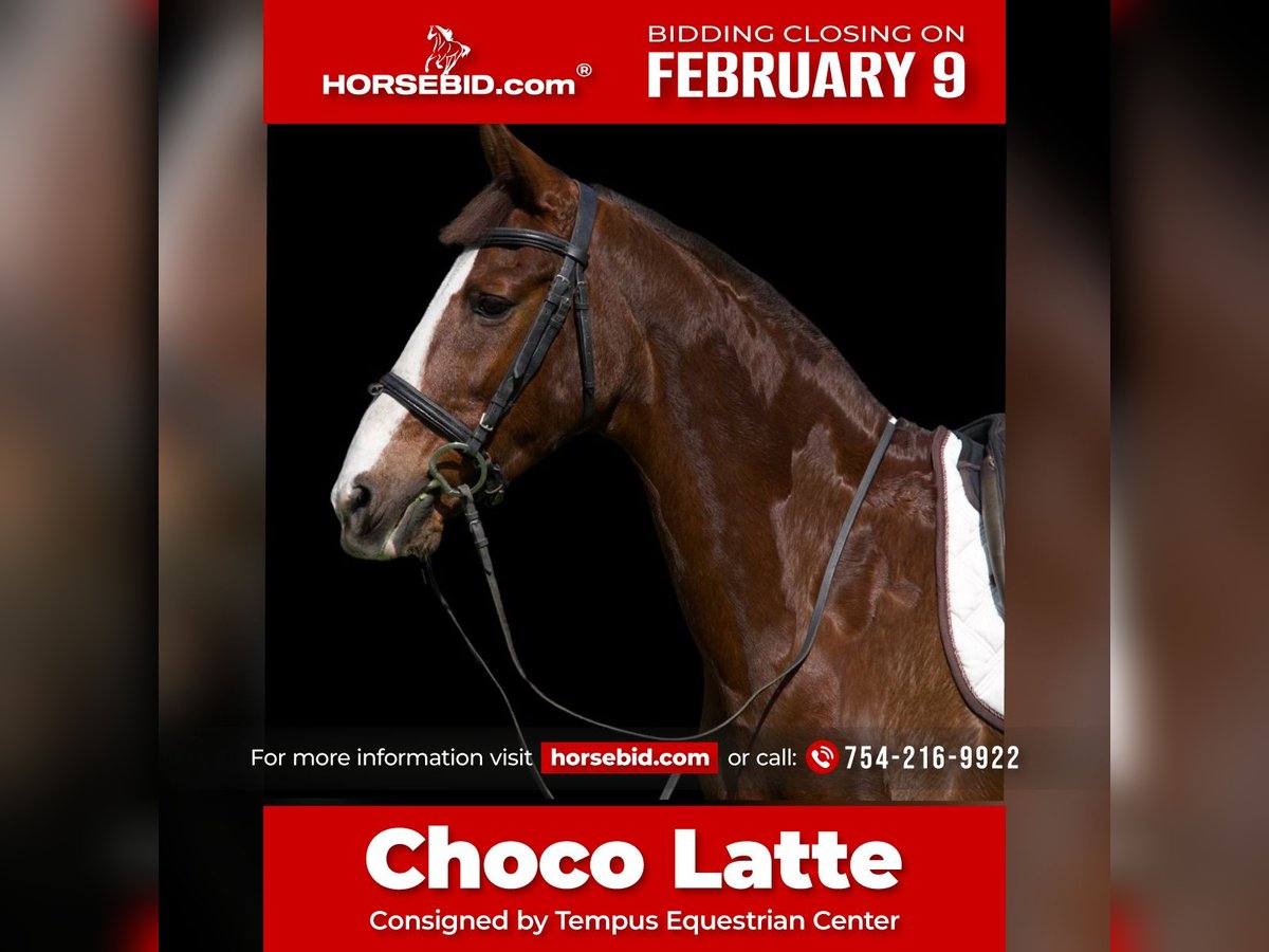❤️🔥𝑩𝒆 𝑴𝒊𝒏𝒆 𝐒𝐄𝐋𝐄𝐂𝐓❤️🔥 Happening now thru MONDAY | FEBRUARY 9th - Available EXCLUSIVELY on HorseBid's website! For more details and to register visit: www.Horsebid.com CONSIGNOR CONTACT: Tempus Equestrian Center 754-216-9922 LOCATION: Southwest Ranches, FL BREED: DHH-type x Morgan cross REGISTERED: No REGISTERED NAME: Choco Latte COLOR: Liver Chestnut HEIGHT: 15.3 AGE: 11 GENDER: Mare A rare opportunity to acquire a correctly bred, thoughtfully developed, and genuinely versatile performance mare. Choco Latte is an 11-year-old, 15.3h DHH-type x Morgan cross mare with strong sporthorse conformation, an uphill build, and a clear, systematic training background. She is an educated, reliable horse with quality movement, a powerful yet adjustable canter, and the kind of rideability that is increasingly difficult to find. She is confirmed through 3rd Level dressage, confidently schooling: • walk–canter and trot–canter transitions • leg yields, shoulder-in, haunches-in (travers), and half-pass • rein-back • simple changes and flying changes (Flying lead changes can be observed in the jumping portions of the video.) She is exceptionally suitable for dressage, offering a soft, consistent contact, and goes comfortably in a simple snaffle, while also being correctly established in a double bridle. Her flatwork translates directly to her jumping. In the jumping footage, Choco Latte is shown being ridden by a student under trainer supervision, demonstrating her honesty, consistency, and forgiving nature. She confidently schools 3’+ fences, including full courses, combinations, lines, and gymnastic systems. She is extremely brave, jumps everything put in front of her, and has no history of stopping or refusing. With her balance, scope, and bold, forward-thinking attitude, she is well suited for hunters, jumpers, and eventing. She has attended local shows, handles new environments professionally, and remains focused and rideable away from home. Choco Latte is currently part of a professional training program and is successfully ridden by advanced riders, adult amateurs, and students and children, making her an excellent fit for competitive homes, lesson programs, or families seeking a safe yet quality horse. In daily management, she is straightforward and easy: • easy keeper, maintains condition well • lives comfortably in pasture or stall/turnout • gets along well with other horses • no stable vices — no cribbing, weaving, stall walking, or digging • quiet to groom, tack, mount, load, and handle • confident on trail rides, alone or in company She is sound, healthy, and ready to continue work immediately with no limitations. ✔ Current Coggins ✔ Recent veterinary exam ✔ Dental float and deworming ✔ Previously barefoot; currently in front shoes due to seasonal footing 📍 Located in Southwest Ranches, Florida
