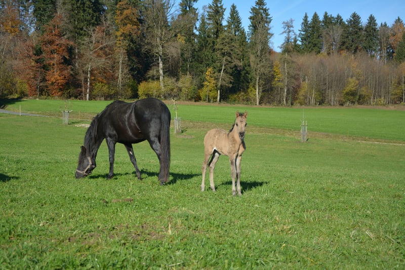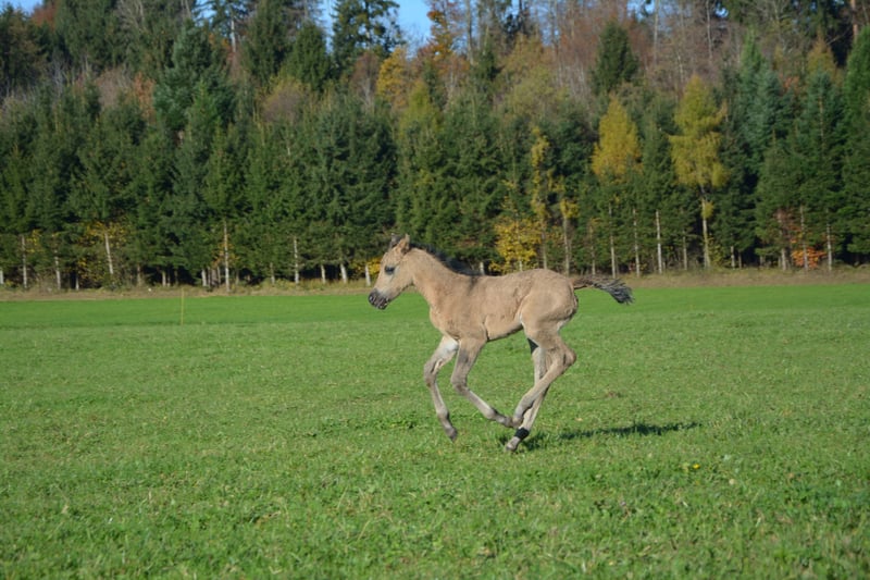 Reinrassiges, außergewöhnlich typvolles Jungpferd – mit Herz, Bewegung und Zukunft! Wir bieten hier eine ganz besondere junge Dame aus unserer Morgan-Zucht an: Unsere am 27. Oktober 2025 geborene reinrassige American Morgan Stute ist ein echtes Juwel – sowohl vom Wesen als auch von ihrer Herkunft. Das American Morgan Horse ist eine der ältesten und edelsten Pferderassen Nordamerikas. Bekannt für seine Vielseitigkeit, Ausdauer, Intelligenz und Menschenbezogenheit, gilt der Morgan als das “Allround-Pferd” schlechthin – ob unter dem Sattel, im Gelände, vor dem Wagen oder in der Zucht. Morgans sind kräftig gebaut, elegant in der Bewegung, mit einem starken Fundament und einem klaren Kopf. Sie zeichnen sich durch ihren ausgeglichenen Charakter, Mut und ihre unerschütterliche Loyalität gegenüber dem Menschen aus – eine Rasse, die Herz und Verstand gleichermaßen begeistert. Unsere junge Stute wächst 100 % reinrassig in einer intakten Herdenstruktur auf – gemeinsam mit Hengst, Stuten und Fohlen, was ihr ein stabiles Sozialverhalten und ein gesundes Selbstvertrauen mit auf den Weg gibt. Sie zeigt schon jetzt eine außergewöhnliche Menschenbezogenheit, ist sehr zutraulich, neugierig, verschmust und begegnet Neuem mit großem Interesse und Gelassenheit. Auf der Wiese präsentiert sie sich bewegungsfreudig, lebendig und voller Energie – ein echter Hingucker mit viel Ausstrahlung! Ihre Farbe ist derzeit noch in Entwicklung – sie wird sich voraussichtlich zu einem Buckskin oder Grullo entwickeln. • Mutter: eine wunderschöne, typvolle Trappe-Stute, sehr liebevoll, verschmust, lernwillig und fleißig. • Vater: ein dunkler Grullo-Hengst, der durch Intelligenz, Stärke, absolute Nervenruhe und Menschennähe besticht – unerschrocken und charismatisch, wie man es selten findet. Diese Kombination verspricht ein Fohlen mit großem Potenzial – sowohl für Freizeit, Show als auch Zucht. Unsere Stute ist ab frühestens Mai 2026 abzugeben. Bis dahin darf sie in ihrer Herde aufwachsen, regelmäßig besucht werden, um eine Vertrauensbasis zwischen ihr und ihrem zukünftigen Menschen aufzubauen. Wir geben sie nur in beste Hände und artgerechte Offenstallhaltung ab – eine familienähnliche, pferdegerechte Umgebung ist uns besonders wichtig. Ein echtes Herzenspferd für Menschen, die das Besondere suchen – intelligent, edel und voller Lebensfreude. Bei Interesse freuen wir uns über persönliche Anfragen und ein Kennenlernen vor Ort!
