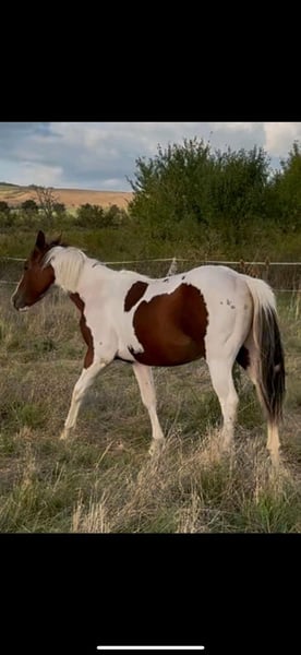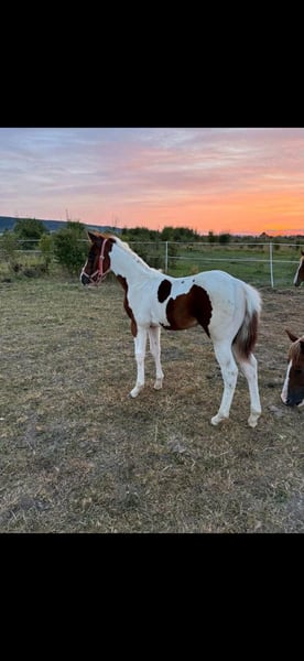 Sehr gelassener zutraulicher Jährlings -Hengst abzugeben. Er wurde am 13.6.24 geboren . Aus eigener Zucht . Farbe Bay . APHA Papier. Die letzten Fotos zeigen ihn als Fohlen . Über seinen Vater *DANCING BOYS OKIE* und seine Mutter *KIWAS LITTLE CHEYENNE* ist er tobiano homozygot (vererbt immer seine Scheckung) und 7 - fach Panel negativ . Er hat also Reining - und Allround- sowie Cowhorse - Gene . Er wird sicher ein guter Partner im Freizeit Reiten werden . Er wäre aber auch für den Sport offen . Er kennt Hunde , Katzen und auch Lärm von Landmaschinen und zeigt dabei seinen ruhigen Charakter. Er wächst mit anderen Junghengsten auf und war vorher mit seiner Mutter in einer gemischten kleinen Herde auf großen Koppeln . Er gibt brav die Hufe , Hänger ist kein Problem , kennt bereits Fellsattel und leichte Gewichte , ist natürlich halfterführig, geimpft , entwurmt . Er ist neugierig und offen , bleibt stets gelassen . Er kann natürlich gern besichtigt werden bei ernsthaftem Interesse .