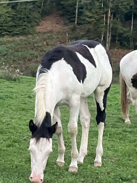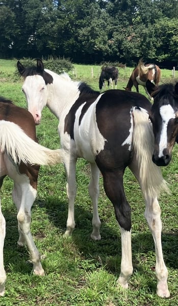 POKER SPHASHY GUN perfect foal for a breeding career, precious genetics (father from Colonels Smoking Gun Line, imported from Canada, no products yet in France/Europe), Poker is a magnificent colt with full APHA Paint horse papers, large and very muscular, future stallion, son of Loversea and Smoke, a real tanky bomb in morphology and mentality, a really top foal, ultra respectful, cool-headed and calm, who will be tall for his breed, a jewel not to be missed!!! . Born on March 25, 2025, he will be available at the beginning of November! Ee aa SW1/SW1 DW20/n LWO/n, 6 panels negative . Mare, Sire and pedigree in last 3 pictures. LOCATED IN FRANCE 🇫🇷 (sexcles 19430)