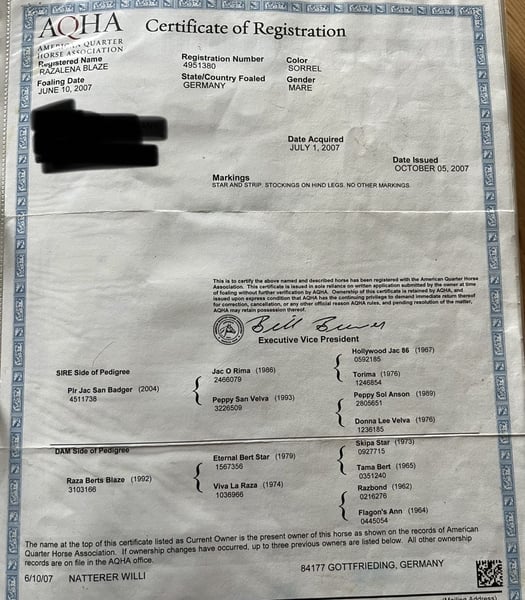 ¡¡¡El precio es completamente negociable!!! ¡Primero la plaza, luego el precio!!! Nuestro pequeño Henry busca un nuevo hogar de 5 estrellas. Henry nació a finales de abril de 2025. Su madre es la yegua de raza Quarter Horse „Razalena Blaze“ (abuelo Jac O Rima, bisabuelo Hollywood Jac 86) y su padre es el semental de Paint Horse „Grab Your Okie Boy“, un hijo directo de Dancing Boys Okie… El pequeño recibirá papeles APHA (en trámite), un pasaporte PHCG y, por parte de los padres, tiene todos los efectos genéticos n/n. Sin embargo, se realizará igualmente una prueba de panel. Actualmente, crece en un grupo de manada con caballos mayores y jóvenes en paddock libre, por lo que está bien socializado. Podrá irse a su nuevo hogar a partir de finales de octubre. Henry ha sido desparasitato regularmente, está vacunado contra el tétanos en el momento de la entrega y ha sido presentado regularmente al herrador. El pequeño está en su casa en 94424 Arnstorf.
