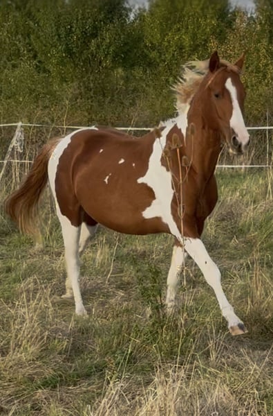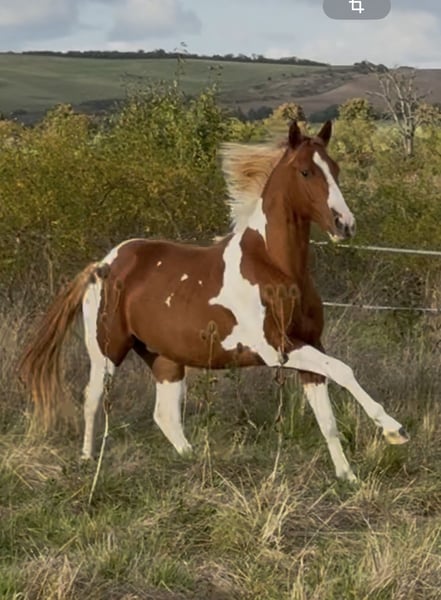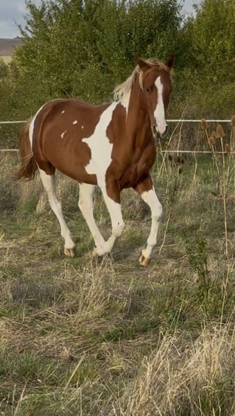 Verkaufe diesen wunderschönen Charakterstarken 2,5 jährigen Hengst mit viel Potenzial , welcher ein förderndes Zuhause für immer sucht. Er ist am 27.05.2023 geboren und überzeugt durch sein beeindruckendes Tobiano-Farbmuster in allen Farben, das sofort ins Auge fällt. Dieser junge Hengst begeistert jeden durch sein freundliches Wesen und ist gegenüber seiner Bezugsperson sehr anhänglich. Er hat zurzeit ein Stockmaß von ca 1,50m und bringt APHA Papiere und den PHCG Pass mit. Durch seine Eltern hat er Reining, Allround- sowie Cowhorse - Gene und zeigt viel Potenzial für die weitere Ausbildung und wird sich später wohl gut für Reiter, die ein zuverlässiges und charmantes Pferd für Freizeit oder auch im Westernbereich suchen eignen. Im Cowhorse Bereich zeigt er schon spielerisches Interesse. Seine robuste Konstitution und sein angenehmer Charakter machen ihn je nach Ausbildung zu einem treuen Begleiter für spätere Ausritte und entspannte Stunden im Gelände, Spaziergänge und machen ihn später somit zu einem idealen Begleiter für Reiter aller Erfahrungsstufen. Er ist Kerngesund , freundlich im Umgang, sehr gut sozialisiert, kennt das Fohlen ABC, ist geimpft und entwurmt, geht ohne Probleme in den Hänger (auch ohne Trensung) rein, kennt bereits Fellsattel, leichte Gewichte, Hunde, Katzen und Landmaschinen und zeigt dabei seinen ruhigen und ausgeglichenen Charakter. Ebenfalls kennt er Stall und Koppelhaltung. Mit seiner Mutter stand er auf der Koppel immer in einer gemischten Herde und hat sich dort unauffällig gezeigt. Zurzeit steht er mit seinem jüngeren Hengstkumpel (1,5 Jahre) zusammen, mit welchem er sich sehr gut versteht. - welcher zur Abgabe ebenfalls bereit steht. Es wäre auch ein Verkauf beider Junghengste sehr gerne zusammen möglich. Beide Hengste zeigen keine Unarten. Die letzten Bilder zeigen ihn als Fohlen mit seiner Mutter Er kann natürlich gern besichtigt werden . Weitere Bilder und Videos könnt Ihr auf Anfrage gerne erhalten.