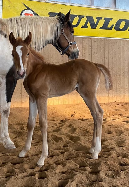 Ein neuer kleiner Held kam am 17.04.2025 zur Welt! Mit seinem ersten Atemzug hat dieser junge Hengst sofort für leuchtende Augen gesorgt. Er begegnet allem mit kindlicher Neugier, einem offenen Herzen und einer natürlichen Ruhe, die einfach berührt. Sein sanfter Blick, sein mutiges Auftreten und seine verspielte Art machen ihn schon jetzt zu einem ganz besonderen Begleiter! Er wird voraussichtlich ein handliches Endmaß von ca. 148 cm erreichen – perfekt für Sport und Freizeit! Er ist kräftig gebaut, mit geraden, stabilen Beinen und harmonischen Proportionen – ein echter Hingucker mit viel Potenzial. Er ist kerngesund, genetisch 5-Panel n/n getestet und kennt bei Abgabe bereits den Tierarzt und den Hufschmied. Natürlich wird er regelmäßig entwurmt und altersgerecht geimpft. Er wächst liebevoll im Herdenverband mit Gleichaltrigen auf und zeigt sich dort neugierig, menschenbezogen und verschmust. Der Kleine ist sehr brav im Umgang, lässt sich problemlos händeln und bewegt sich locker und elegant – ein echtes Naturtalent! Dank seiner hervorragenden Reining-Abstammung bringt er beste Voraussetzungen für den Turniersport mit, ist aber genauso ein Schatz für den Freizeitreiter. Sein Papa ist kein Geringerer als der erfolgreiche Lil Dunit Smart (LTE NRHA USA 33.560 $, NRHA Germany 10.180 €), ein Sohn des bekannten Lil Peppy Dunit Right. Er wird mit vollständigen Papieren und Equidenpass abgegeben – bereit, die Herzen seiner neuen Menschen im Sturm zu erobern. Er sucht noch sein⭐️⭐️⭐️⭐️⭐️-Zuhause! Bei Interesse gerne melden!