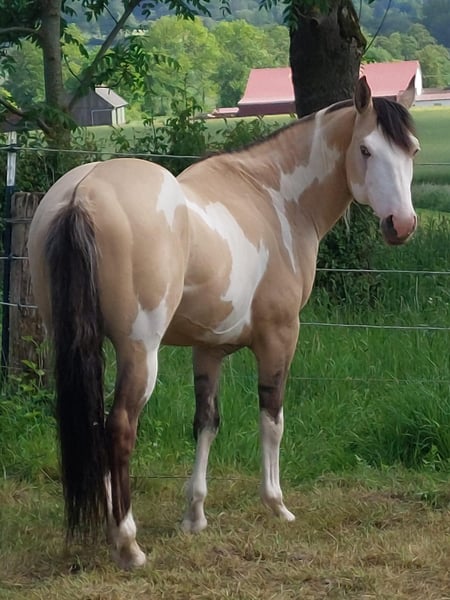 *Dunskin Overo Paint Horse Deckhengst* Ab April 2026 im Frischsamenversand EU-Weit für alle Rassen verfügbar: Streetwalker SBH ist ein wunderschöner, kräftiger und kompakter Paint Horse Deckhengst der ab April erstmals über Triple J Stables EU-Weit im Frischsamenversand verfügbar ist. Ende Februar zieht er bereits zur Vorbereitung auf die Station, die Saison beginnt 😍 Streetwalker SBH übertrifft die Coolness bei Weitem, nicht nur er, sondern auch seine bisherigen Nachzuchten überzeugen in ganzer Linie. Sein Großvater ist kein geringerer als der World Champion Reiner Luckys TE N TE. Und aus der Ethels Ivory Star gezogen bringt Streetwalker nicht nur den ruhigen Leo und herdenverträglichen Cow Horse Hengst King mit, sondern auch das kräftige vielseitigen Ranchhorse Hancock findet man in seinen Ahnen. Das macht Streetwalker SBH zu einem echten Allrounder und er ist so entspannt und cool, dass er im im Offenstall im Herdenverband mit seinen Stuten lebt. Durch seine seltene Farbgenetik hat er bisher nur Sonderfarben an seine Fohlen vererbt und lässt keine Wünsche offen. Er ist ein Dunskin Overo und kann daher sein Creme Gen, sein Dun Gen, seine Overo-Scheckung oder sein W20 Gen vererben. Zudem ist der Homozygot Black (EE), sodass er keine Füchse machen kann. Je nach Farbgenetik der Stute kann er also Bay, Black, Buckskin, Dunskin, Bay Dun, Smoky Black, Smoky Grullo oder Grullo machen und alles mit seiner schönen Overo Scheckung möglich. Zudem trägt er das W20-Gen welches schöne weiße Abzeichen bringt oder eine Scheckung boostert. Er ist kräftig im Körperbau, hat starke Knochen, gesunde Hufe, ein schönes Köpfchen und zeigt sich auch unterm Sattel, ob im Training oder Kinderreitunterricht vielseitig und unterschrocken. Hier nochmal die Eckdaten im Überblick: Genetik: EE Aa Cr/N D/nd2 OLWS/N W20/N 7 Panel N/N inkl. IMM/MYHM + EJSCA frei! Größe: 1,46 - deckt gut ab und vererbt auch Größe! Decktaxe: 680 im Splitting-System Das heißt 340 Anzahlung bei Vertragsabschluss und die restlichen 340 wird erst fällig wenn die Stute tragend ist! Er ist im APHA registriert und im ZSSE gekört und somit für alle Rassen verfügbar. Bei Interesse oder Fragen, gerne schreiben. Wir freuen uns auf eure Stuten!