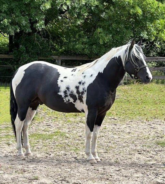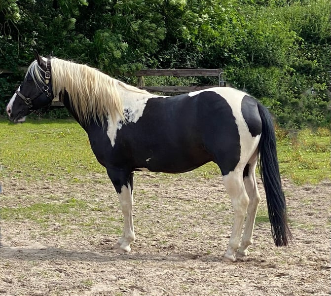 Doppelt homozygot: tobiano und black BmsQtIndianJohnChisum vereint ein kräftiges Fundament, korrektes Gebäude, sehr schöne Grundgangarten und ein freundliches Wesen. Auch seine Nachzucht bringt beste Reitpferdeeigenschaften mit. Er ist eingetragen in das Hengstbuch II des PHCGs mit einer überragenden Wertnote von 7,75. Die Nachkommen von BmsQtIndianJohnChisumv erben immer das Tobiano Gen und sind somit zu 100% gescheckt . Außerdem gibt der Hengst immer ein Schwarz Gen weiter, weshalb keine Füchse möglich sind. DOPPELT HOMOZYGOT: BLACK UND TOBIANO HYPP(N/N), LWO(N/N), HERDA(N/N) PSSM(N/N), GBED(N/N), MH(N/N) IMM(N/N), MIM/PSSM2 (N/N)
