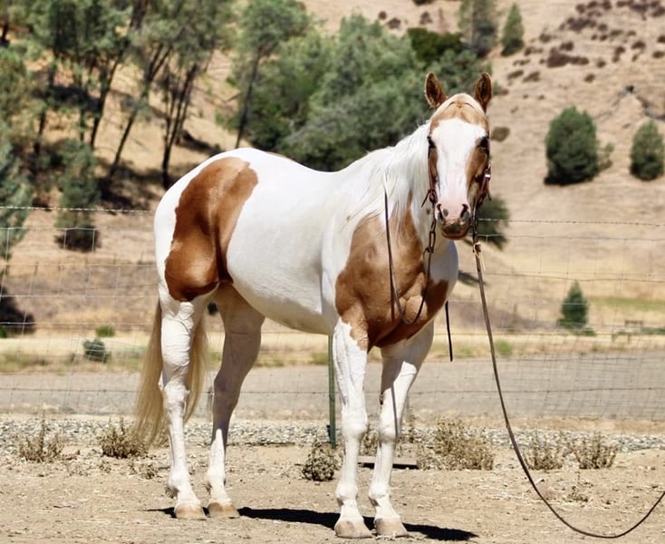 ONLINE AUCTION Place your bids at www.PlatinumEquineAuction.com Starting Bid $3500 Auction ends August 3rd, 2025 Need a new saddle? Check out White Rock Saddles on our website or Facebook Meet Bunny… If you’ve been searching for that rock-solid, “take-care-of-you” kind of horse… meet Bunny. She’s an 11-year-old palomino and white paint mare who stands 15 hands, but her heart and patience are ten feet tall. Bunny has safely carried everyone from nervous first-timers to adults who haven’t ridden since dial-up internet was a thing. She’s taught countless riders the ropes with confidence and zero drama. This is the kind of mare who makes you feel like you know what you’re doing—even if you don’t. In the arena, Bunny is soft and correct. She lopes smooth circles, stops and backs with ease, and has just enough turn-around to remind you she’s broke, not boring. She’s as dependable as the sunrise, with no buttons to accidentally push and no funny business to worry about. On the trail, she’s a machine. Bunny navigates rocky climbs, creek crossings, logs, brush, and steep hills like she’s part mountain goat. She’s seen it all—flags, traffic, tarps, sirens, pool noodles—and never bats an eye. Bunny will conquer any obstacle you throw her way. She’s also been used on the ranch and knows her way around cattle and branding. We trust her with our greenest riders because she’s basically a babysitter in a bridle—steady, kind, and always thinking ahead. And her ground manners? Impeccable. She leads, ties, bathes, hauls, stands for the vet and farrier, and settles into new places like she’s been there forever. She’s polite, friendly, not marish in the slightest, and frankly acts better than most geldings—and a good number of humans. If you’re looking for a safe, kind, all-around wonderful mare to be your trail buddy, confidence builder, family horse, or ranch partner, Bunny is ready to help take care of you. Located in Paicines, CA. Call Dina at Longhorn Ranch: 831-537-1915 Delivery available, but only if you promise to treat her like royalty. ONLINE AUCTION Place your bids at www.PlatinumEquineAuction.com Starting Bid $3500 Auction ends August 3rd, 2025 Need a new saddle? Check out White Rock Saddles on our website or Facebook