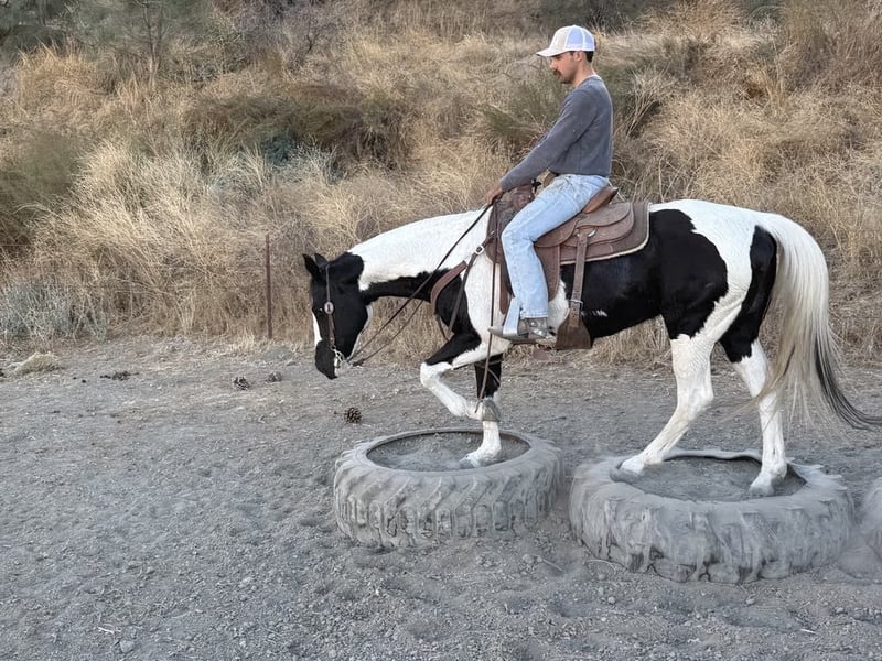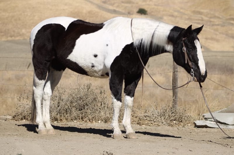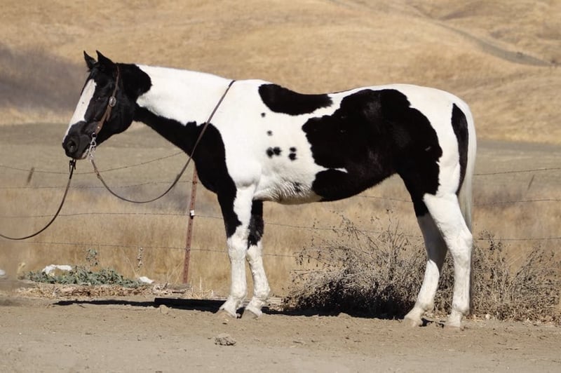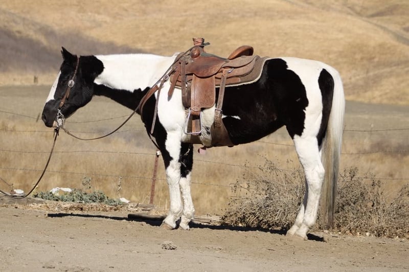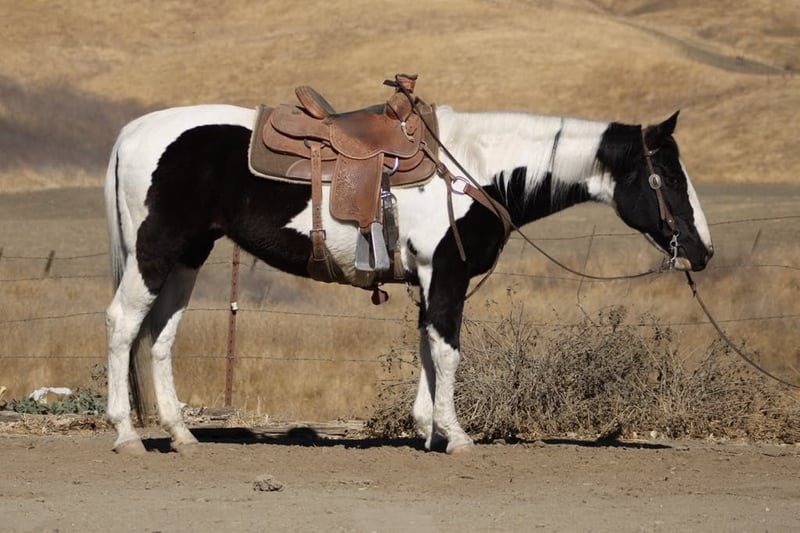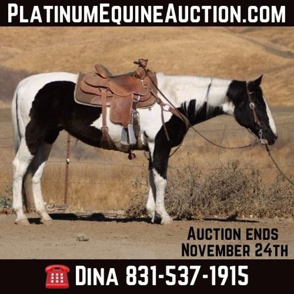 ONLINE AUCTION Place your bids at www.PlatinumEquineAuction.com Starting Bid $3500 Auction ends November 24th, 2024 Need a new saddle? Check out White Rock Saddles on our website or Facebook! Moo is a stunning black and white paint mare, standing proudly at 15 hands tall and brimming with charm at the age of 12. Her striking markings are like art on hooves, making her not just a horse but a masterpiece in motion. Gentle as a spring breezes, she has spent the past few years delighting riders as an exceptional trail horse. With her lovely slow trot and smooth lope in the arena, combined with that adorable little sliding stop, every ride feels like poetry in motion. Handling obstacles is merely child’s play for Moo; she confidently walks over tarps, bridges, and even through pools noodles without batting an eye! Water crossings? A walk in the park for this eager explorer! Whether navigating busy town streets or serene trails lined with picturesque views she embraces it all with grace and curiosity. Easy to catch and a dream to tie up or tack up, Moo adapts seamlessly whether she’s chilling in pasture or enjoying cozy stall time. She trailers beautifully too, adjusting effortlessly to new places while bringing joy wherever she goes! Time off only refreshes her spirit; this sweet mare proves time and again that she will be your steadfast friend and loyal trail partner for many adventures ahead all while reminding you how wonderful life can be when shared with such delightful company! Please come meet Moo at Longhorn Ranch in Paicines, CA. Contact Longhorn Ranch Dina 831-537-1915 with any questions. ONLINE AUCTION Place your bids at www.PlatinumEquineAuction.com Starting Bid $3500 Auction ends November 24th, 2024 Need a new saddle? Check out White Rock Saddles on our website or Facebook!
