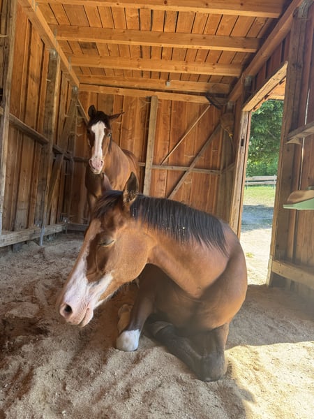 Por favor, lee todo con atención y solo si todo encaja perfectamente, ¡no dudes en contactarme! ¡Primero la calidad antes que el precio! Si todo encaja, entrego mi yegua paint (sin ovarios) en las mejores manos y en condiciones de vida adecuadas para ella. Tiene 13 años, aproximadamente 1,60 m de altura y es un caballo muy especial. Es un caballo completamente tranquilo en cuanto a jerarquía social, muy sociable, que le encantaría tener un compañero para el cuidado del pelaje. En relación con las personas, sin embargo, a menudo puede ser un “caballo gruñón”, con problemas de cercanía y distancia. Por ello, solo en manos de personas experimentadas y firmes, no apta para niños, y en ningún caso con personas que quieran “convencerla” con presión y autoridad. La presión aumenta su actitud gruñona. Dado que su comportamiento empeora en establo, solo la entrego… -> en paddock abierto, -> con compañeros equinos justos, -> con suficiente espacio para descansar, refugios y zonas de retiro, -> y acceso a heno las 24 horas del día, los 7 días de la semana. Deseo encontrarle un hogar “para siempre” — ¡no quiero que se convierta en un trofeo de exhibición! Tiene algunas “heridas” y, por ello, estuvo mucho tiempo sin montar y se vende como apta solo con restricciones para montar. Es típica de su raza, con una flexibilidad suave y positiva en la prueba de flexión. A principios de año, tuvo problemas con un ángulo palmar negativo / malposición del hueso del casco en el pie delantero, que no fue diagnosticado durante mucho tiempo. Debido a la sobrecarga, sufrió una inflamación bilateral de las vainas de los tendones flexores del casco. Desde agosto, camina sin cojera. Con herradura de plástico, ahora se adapta bien y, desde hace unas semanas, se ha estado montando lentamente en paseos por el campo. Ya no podrá ser un caballo de montar 100% apto para cargas, y tampoco es apta para la reproducción. ¡No es un peso para el jinete! Para trabajo en pista o en indoor, montar en terreno profundo, con muchas vueltas o para el trabajo en línea, no es adecuada debido a su flexibilidad suave en las articulaciones. Sin embargo, en terreno firme y en caminos rectos, es una compañera maravillosa para paseos tranquilos por el campo. Se monta en Western. En el campo, es segura y un caballo de confianza: siempre la monto sin bocado. Camina sola, incluso en rutas completamente desconocidas, con o como caballista auxiliar, y siempre ha sido tranquila incluso después de largos descansos. No es nerviosa y, en general, es bastante tranquila y algo perezosa. Es muy inteligente y divertida. Sabe hacer algunos trucos y seguramente le encantaría aprender trucos de circo y más. Solo la paseamos con cabestro. Desde ruidos cotidianos, motosierra hasta ruido de obras, nunca la ha alterado rápidamente. Siempre ha sido tranquila en la herrería y en la consulta veterinaria. Su lado más problemático solo lo ha reservado para nosotros ;)… ¿Cargarla en el remolque? ¡Por comida, casi hace cualquier cosa! Aunque hace tiempo que no la llevo en remolque, he practicado regularmente con ella el entrenamiento de carga. Vacunada regularmente, desparasitada y con herrado de plástico de 4 puntos. Revisiones dentales al día. Análisis de sangre reciente. Visita quiropráctica prevista para principios de 2025. No es una venta de emergencia — busco un hogar perfecto para ella, “para siempre”. Si puedes imaginarte ofrecerle a mi yegua paint un hogar de 5 estrellas y atender sus particularidades, estaré encantada de recibir tu mensaje — por favor, con tu nombre completo y una breve presentación de tu futura familia. Todo el equipamiento, incluido un arnés western adecuado, puede adquirirse junto con ella.