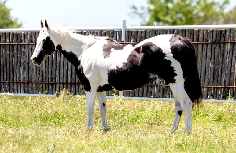 ONLINE AUCTION Place your bids at www.PlatinumEquineAuction.com Starting Bid $3500 Auction ends June 15th, 2025 Need a new saddle? Check out White Rock Saddles on our website or Facebook! Destiny is a 14.3H, 15 yr old black and white paint mare. She is extremely sweet and wants to be everyone’s friend. She has spent her life as a trail horse for a handful of novice riders and she has had a couple foals. Destiny is every trail riders dream. She is GORGEOUS, kind and gentle! She rides well, neck reins and goes the speed you ask of her! She isn’t watchy and never tries to do any silly tricks! She would be a great addition to anyone’s heard that want just pleasure / trail ride and have an easy one! She’s simple to get along with and easy to operate! She’s been ridden bareback in just a halter tons and would really excel as a family horse for anyone to jump on and enjoy! She is extremely uniquely colored and sure to get attention everywhere you take her! She has thrown her color in her foals as well! Destiny loads, leads, bathes and ties great and is your simple, easy going trail horse! She’d fit a lesson barn or therapy center well too! She’s not marish in the slightest and is very gentle natured. Don’t miss your chance to own a super unique, gentle, SWEET family horse! Go to her website page northtexashorsecompany.com/destiny for more pictures and footage! Please call Blair with North Texas Horse Company for more info at 817-757-3046. We are located in Weatherford, TX and can help arrange affordable shipping to anyone!! ONLINE AUCTION Place your bids at www.PlatinumEquineAuction.com Starting Bid $3500 Auction ends June 15th, 2025 Need a new saddle? Check out White Rock Saddles on our website or Facebook!