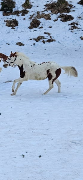 Paint filly for sale.Healthy,dewormed,knows all the vasica od foaling.Friendly,used to el. shepherd and Live in the herd.