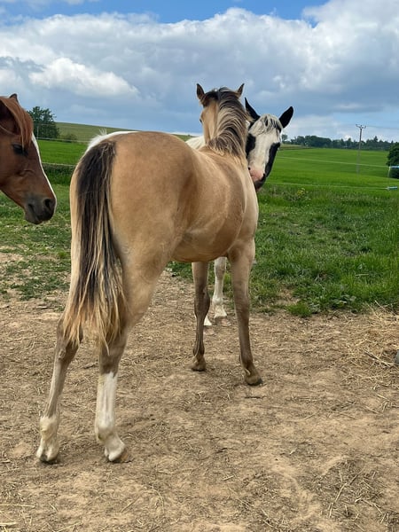 Lucy ist am 15.03.2024 in der Herde geboren. Sie wächst robust in der Herde auf. Tägliches spielen lassen Muskeln, Ausdauer und Lunge wachsen. Schon jetzt ist sie fast so groß, wie ihre Mutter. Hat eine schöne Breite Brust und eine kräftige Kruppe. Ihr tolle Farbe und die überdurchschnittliche Ausstrahlung machen Sie zu einem wahren Hingucker. Weitere Bilder und Videos gerne auf Anfrage.