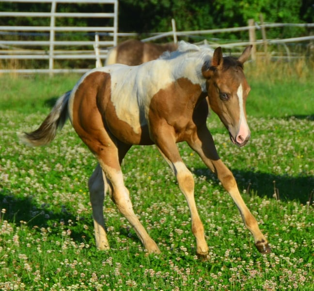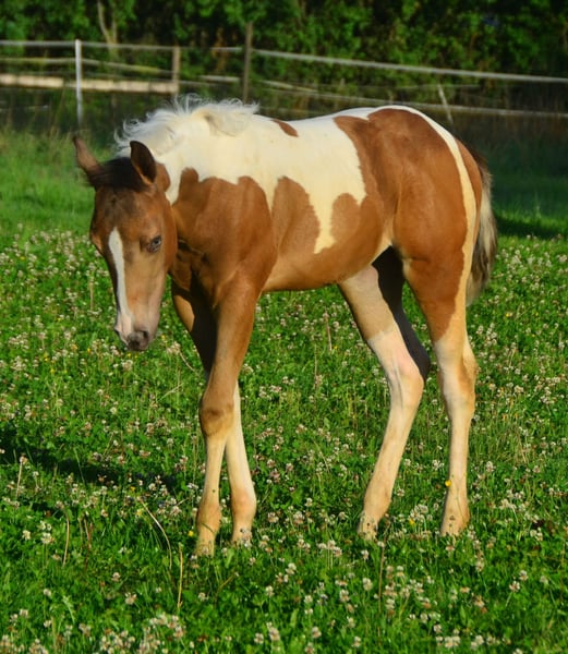 Miral ist Amber Champagne, eine geniale Bewegerin und ganz liebes, sanftes Wesen. Sie ist reinerbig für das Tobiano Gen, und wird immer nur bunte Fohlen bringen. Sie ist ein Paint Horse mit vollem Papier und 7 Panel N/N. Wächst hier artgerecht in der grossen Herde auf. Wird natürlich regelm. entwurmt und geimpft, mit Papier und Pass abgegeben.