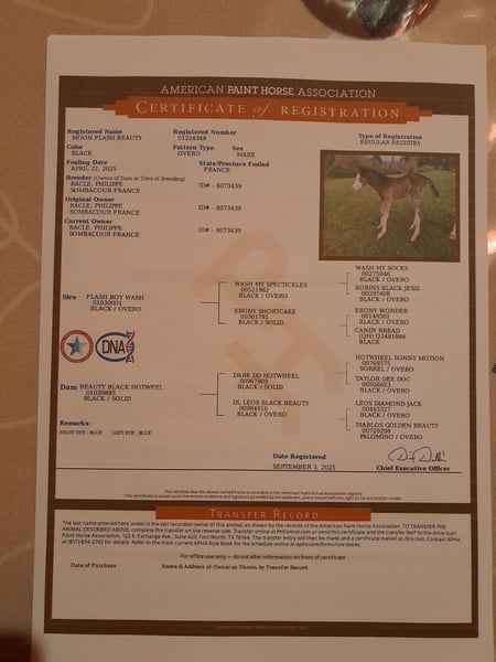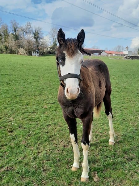 Vas pouliche paint horse pp américain et français black overo. Proche de l homme.