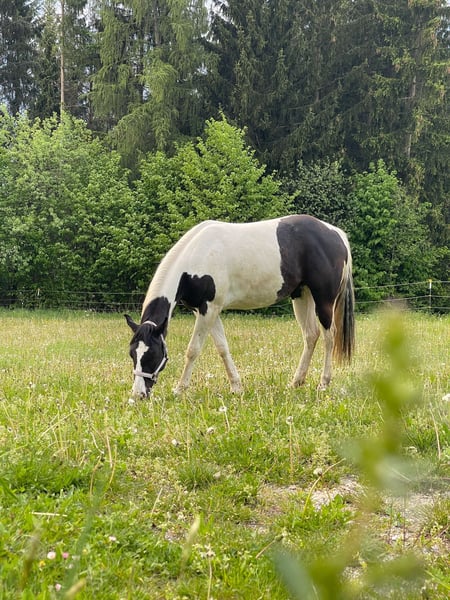 Born: January 2023 Height: approximately 15.2–15.3 hh Pedigree Sire: Passionate King Cody PH Dam: AS Cherokee Rose PH ✨ Our beautiful Paint Horse mare, AS Passionate Ellie, impresses with her expressive type, harmonious temperament, and stunning black tobiano markings. A premium foal with a score of 7.8, she offers excellent prospects for sport, leisure, or breeding. ✨ - Ellie is consistently friendly, calm, and human-oriented - Curious, open-minded, and eager to learn - Enjoys work and learns quickly - Loading and traveling in the trailer are no problem for her - Knows and loves children and dogs - We regularly do groundwork and lunging - Is familiar with rider weight; my children can sit on her without a saddle – she handles everything effortlessly Raised in an open stable but also familiar with paddock boxes Regularly dewormed, vaccinated, and introduced to the farrier She will be professionally backed in January (price increases with training) Ellie would also be well-suited for breeding.