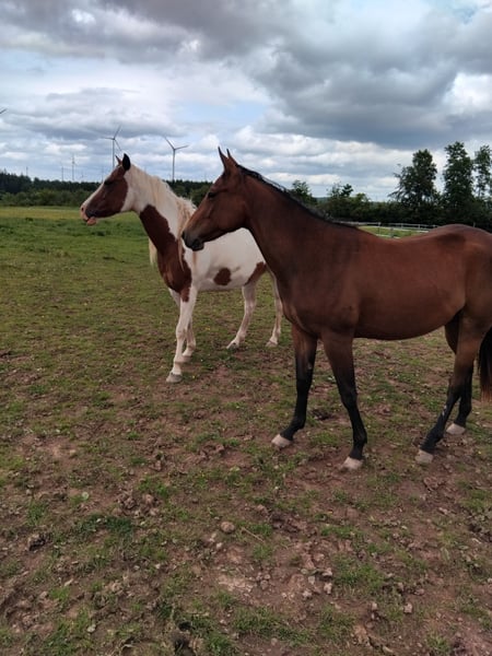 HOLLY, Schoene dunkelbraune Stute Aus 30jaehriger Hobbyzucht. In kleiner Herde aufgewachsen. Vater Quarter Horse, Mutter R. R. Schwarz weisse Paint. Beide bei uns vorhanden. Abgabe nur in Artgerechte Haltung und Pferdegesellschaft. Terminabsprache telefon 06557900092 oder 01728860231. Danke .Ohne Papiere, sonst waere Sie ja auch Teurer. HALBE Papiere koennen vom., VATER HER beantragt werden!! Hallo, Es waehre schön wenn Leute Interesse haben, sich bei n i c h t Interesse einfach mal abmelden würden.!!!!, Danke