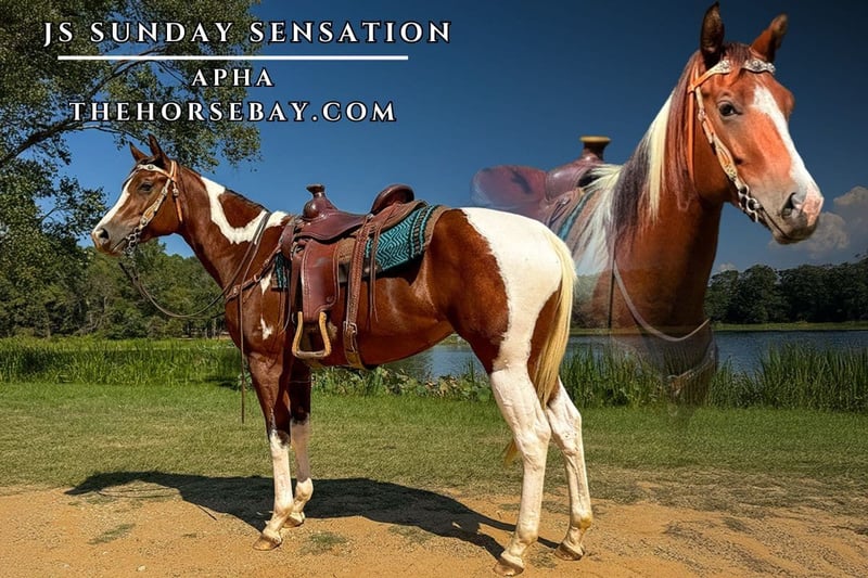 OPEN BIDDING ON THEHORSEBAY,COM. SALE ENDS ON 01/22. More information is available on the website, including an UTD vet inspection, Coggins, video, images, and the owner's contact information to ask questions, request information, or make arrangements to come to visit. JS Sunday Sensation is a 2022 super smooth, fancy mare with a calm, easy-going personality. She stands 15.3 hands tall; her conformation is very correct, and her disposition is as sweet as her face. Young with her whole life ahead of her, Sunday has been fun and easy to work with as she is very smart and willing. She has a slow, smooth trot and canter. She knows her leads and can do flying lead changes. She moves off of just your seat and knows leg cues. She will stay in each gait on a loose rein without trying to run off with you. She is soft in the face and will collect at each gait. She side passes and has a good stop. Sunday is good-minded and not spooky or flighty. Safe for an intermediate rider or advanced beginner with a trainer. She could be ready to go to the show ring in no time. She has been exposed to cattle and dogs, crossed logs and creeks, and been ridden on trails and around traffic. She rides excellently alone or in group trail rides. Rides Western and English. Rides well in and out of the arena. She is easy to catch. She loads easily. She stands quiet and tied. She loves baths and is good for the farrier. Her sire, John Simon, is ranked with APHA as the 4th of 2024 leading sires of Performance winners and 5th of 2024 leading sires of point-earning Performance horses. She has excellent winning bloodlines on both sides. She is current on her coggins and shots; she just had a basic PPE done. Located in Palestine, TX.