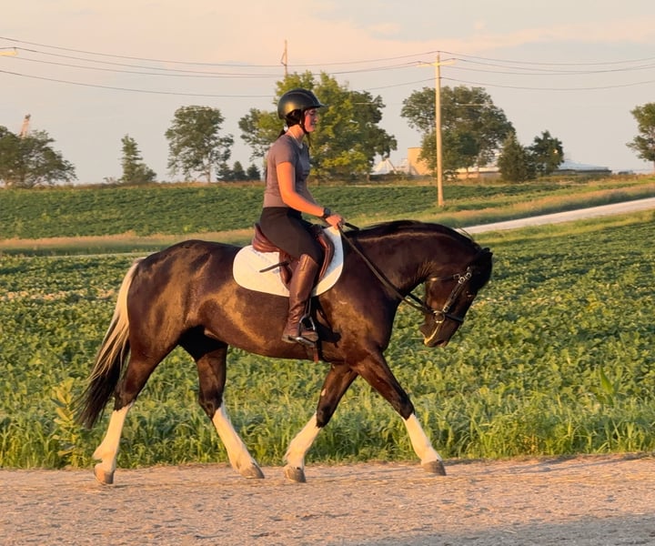 ⚔️ The HORSEMAN's Select ⚔️ Happening now thru MONDAY | JULY 28th - Available EXCLUSIVELY on HorseBid's website! For more details and to register visit: www.Horsebid.com CONSIGNOR CONTACT: Helmuth Equine 515-460-9191 LOCATION: Ames, IA BREED: Paint/Welsh Cross REGISTERED: No COLOR: Paint HEIGHT: 14.1 AGE: 4 GENDER: Mare “Mazy” is a stunning 4 year old Paint/Welsh Pony cross mare standing 14.1 hands and built like a tank. Mazy brings beauty, elegance, style, movement, talent, and sweetness all in one package! Mazy is the kind of horse that a full-sized adult can comfortably ride, yet she’s not too tall to be intimidating for a child to confidently cruise down the trail with. She lopes nice circles, responds well to leg pressure, and has the smoothest western pleasure jog you could ask for. She also has the forwardness and presence to shine in the show ring, whether it’s combined driving, pleasure driving, dressage, western dressage, ranch horse classes, or just looking super fancy going down the trail or through town! Mazy can truly do it all and turn heads while she’s at it. She is 100% sound, sane, and healthy in every way, and requires no special maintenance. She stands quietly in cross ties, at the wash rack, or tied to the trailer. Wherever you take her, she’s ready to go! Mazy is easy to catch, gets along well with any pasture mates, and is equally content living in a stall or outside. If you’re looking for a truly unique, one-of-a-kind partner who’s ready to excel in any discipline, don’t miss out on this exceptional mare!