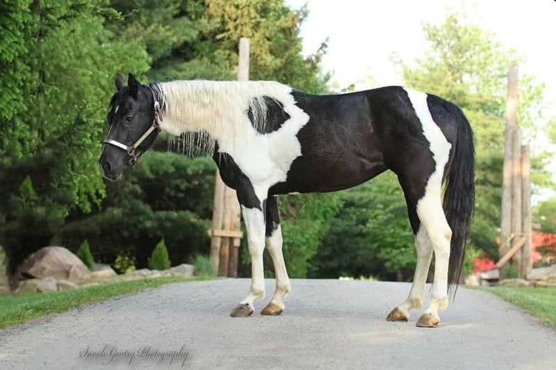 ONLINE AUCTION Place your bids at www.PlatinumEquineAuction.com Starting Bid $3500 Auction ends October 20th, 2024 Need a new saddle? Check out White Rock Saddles on our website or Facebook! Breezin Tazzy Cat aka Sweet Pea is a 4 year old registered American Paint Horse with the kind of markings that never fail to turn heads anywhere that she goes. Taris Breezin Cat quickly earned her barn name (Sweet Pea) as she is truly one of the kindest, gentlest, and most willing mares that you will ever meet in your life, we can guarantee you that! Taris Breezin Cat aka Sweet Pea stands 14.2 hands high. Her sire is accomplished stallion Meradas Cat Alena and her grand sire is the one and only Cats Merada who boasts an overall LTE of 5 MILLION dollars! Sweet Peas dam is a 1D barrel horse that won her 2 year old futurity.(her dam was foaled in 1997) Mr. Star Breeze (her dams sire) has sired many horses that have been succesful in roping events, barrels, as well as poles. Sweet Peas has always been brought along in her riding journey slowly and correctly and we absolutely welcome a PPE at buyers expense. We also are more than happy to allow any serious buyers the opportunity to ride her themselves to see just how fabulous this mare truly is for yourself. She has been ridden extensively and will go in English tack, Western tack, or even bareback. Sweet Pea ois one of the smoothest moving mares that you will ever have the pleasure of swinging a leg over. This mare has been started slowly and correctly and has always been sound and will hold up a LOT LONGER AND BETTER than the horses that were pushed really hard as a 2 or 3 yo. She may only be 5 years old but this mare is one of a kind and always keeps her cool whenever she has been presented with anything new. She has been used in our lesson program and has shown her ability to adapt to just about and level or age of rider. This mare is the kind of horse to stop her all youve got to do is say the word whoah and sit in your seat and she will tuck her butt and come to a sliding stop. She also been ridden on the road as well as crosses bridges, obstacles, and tarps etc. Sweet pea is also trick trained and her tricks she can perform are laying down for mounting, bowing, as well as sitting down. She has participate in a 4 day 3 night trail ride where she put in 35 miles on the trails with varying levels of riders throughout the trip. She even rode from Pleasant Hill Lake Park all the way to Mount Geez and had to cross roads, rivers, and fallen limbs etc in order to make the ride. She is truly the definition of a push button style horse that goes in whatever direction you ask at whatever speed that you ask for. She also has very good verbal cues on the ground as well as under saddle. Our three year old son actually often gets her out of her stall and can lead her without issue. Sweet Pea has also been swam bareback through our pond and even into the deep end where she cannot touch. I was even amazed at just how quickly she was able to pickup riding completely bridleless through our obstacle course without any worry or concern. I also have to say that she has fantastic ground manners and also is started on some liberty work as well. She also has been over smaller jumps in English tack a handful of times and also has worked cattle a couple times as well. We have lots going on at our facility like tractors , cats, kids, dogs, side by sides, and even a back hoe and shes never been bothered by any of it. She has always had such a softness and quietness about her demeanor she truly is an old soul with the mind of a horse easily twice her age. We definately will miss having her with us because she often my go to for a variety of different jobs and activities and due to her safe nature and willing to please mindset. Sweet Pea is also fantatic about loading into a trailer, hauling new places, for the ferrer/vet, worming, as well as cross tying or standing on a highline overnight. She is on the middle of the totem pole when turned out with other horses and get along with every horse that we hvae introduced her to. Sweet Pea is extremely versatile and could go any direction such as staying a lesson horse, trick riding, Liberty work, Roping, Trail, Contesting, cutting and Penning, or even a super cute Hunter/Jumper. Sweet Pea has a current Coggins/Health certificate and we can help get you setup with a couple reputable haulers that are reasonably priced. We have a signed transfer through American Paint Horse Association so that buyer can get her transferred into their name as well. If you have any questions about Breezin Tazzy Cat aka Sweet Pea or would like to schedule a day to come meet and ride her at our facility in Ashland Ohio. Call or text Jonas Miller 419-512-7885. ONLINE AUCTION Place your bids at www.PlatinumEquineAuction.com Starting Bid $3500 Auction ends October 20th, 2024 Need a new saddle? Check out White Rock Saddles on our website or Facebook!
