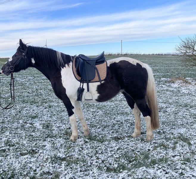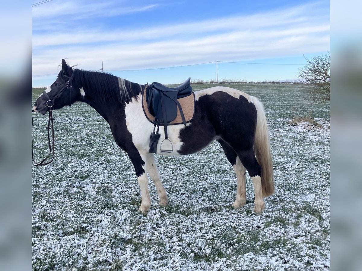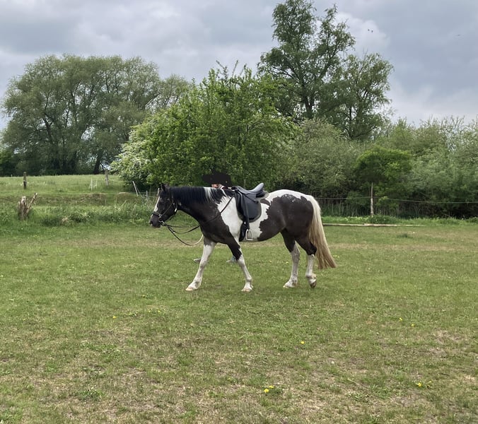 Ich verkaufe Aniza geb. im Mai 2000 Ihr Vater ist ein American Paint in Black Overo ihre Mutter ist eine Appaloosa/Paint Mix Stute Sie kennt Hufschmied Anhänger fahren usw., sie geht sehr gern auf den Pferdeanhänger. Seit September 2024 wurde sie 8 Monate am Boden gearbeitet, sie hört schön auf die Stimme und lernt sehr schnell. Tricks wären ihr sicher leicht beizubringen. Seit Juli 2025 wird sie bei mir regelmäßig durch eine Ausbilderin geritten, sie ist fleißig, macht gerne mit und ist brav, auch ins Gelände geht sie allein. Sie wird aktuell englisch geritten, da sie sehr schnell lernt, wäre ein Umstieg auf Western sicher leicht möglich. Sie ist eine selbstbewusste Stute und kein Anfängerpferd. Sie benötigt eine liebevolle, aber konsequente Hand im Umgang. Viel Beschäftigung wäre das Beste für sie ich kann mir sie gut als Wanderreitpferd vorstellen. Sie ist es gewohnt, von Fohlen an im Winter nachts in einer Box untergebracht zu sein, das wünsche ich mir für sie weiterhin, sie ist die erste, welche abends in den Stall möchte.