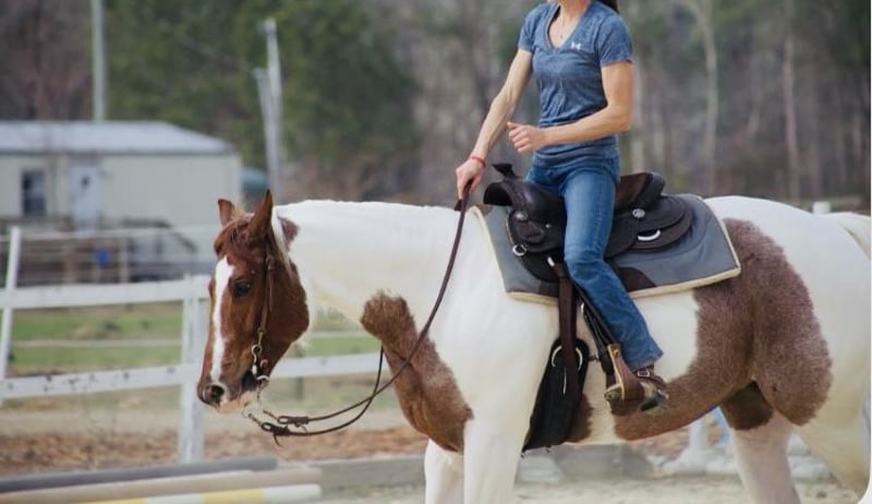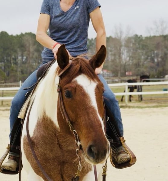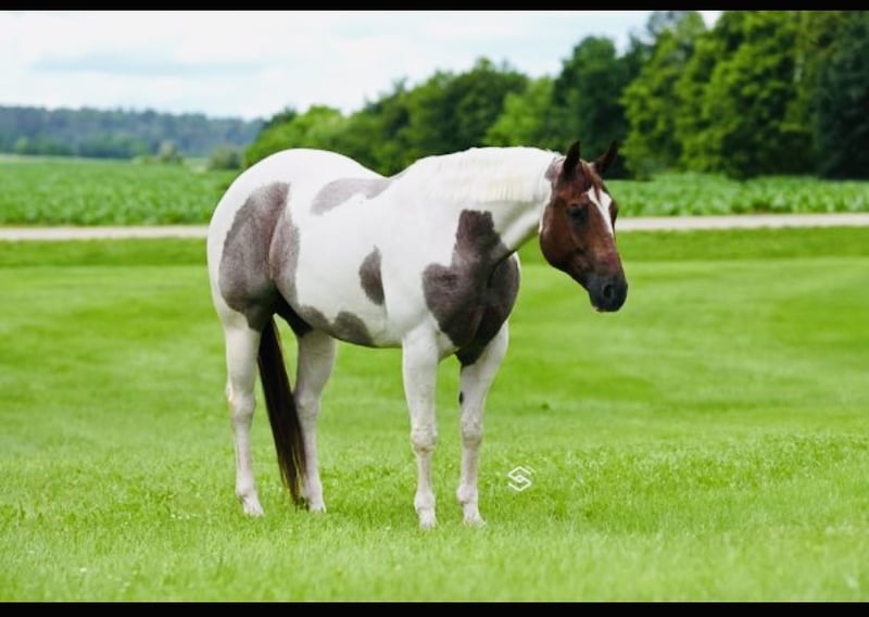 ONLINE AUCTION Place your bids at www.PlatinumEquineAuction.com Starting Bid $3500 Auction ends October 12th, 2025 Need a new saddle? Check out White Rock Saddles on our website or Facebook Introducing this beautiful ranch or WP mare we call Trouble. She stands right at 15.2 hands. She has the look to get you noticed, personality and class you hope to find. Her favorite past time is to blow bubbles in the water or grab the hoof pick and swing it. She has personality **2018 ~ red roan tobiano (APHA/PtHA) Sire: Rockin Vital Signs Dam: Executive Trouble by Fancy Bonanza 2019 $ earner in Paint Futurity- longe line 2021-top 10 color Congress breed pinto show; youngest horse in walk/trot WP, placed top 5 out of 35 horses Since, she’s shown and placed in fun shows. Trouble rides around graciously and has the demeanor to be enjoyed by the entire family. She’s a barn favorite by many and puts a smile on your face. She wants nothing more than to be easy going. Easy to load! Load her up if a day on the trails is your thing. She’s excellent for the farrier/vet/grooming etc. rides solo in or out of arena. She’s an easy keeper. Take this girl and show in WP walk/trot and win or move her into ranch which is the direction we’ve gone with her. She’s been hauled, used in ranch clinics, will cross bridges, spins, side passes. ***WP or ranch for experienced youth, novice, or amateur. Will still slow for WP walk trot, but prefers the ranch lope. Been in ranch training for 6 months. Pretty and soft mover- head turner! Personal issues (Divorce) is the only reason this sweet mare is available. Take advantage of this opportunity to own this special mare. She’s flashy, sweet, and beautiful **Clean x-tays of feet, legs, and back available upon request. I have additional trail videos and videos of her riding around the arena at home also if needed. Contact Lisa – texting is quicker but I’ll try to respond to calls as soon as possible 843-450-1383 ONLINE AUCTION Place your bids at www.PlatinumEquineAuction.com Starting Bid $3500 Auction ends October 12th, 2025 Need a new saddle? Check out White Rock Saddles on our website or Facebook