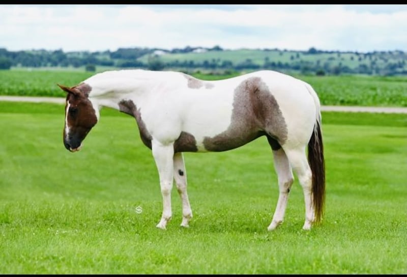 ONLINE AUCTION Place your bids at www.PlatinumEquineAuction.com Starting Bid $3500 Auction ends October 12th, 2025 Need a new saddle? Check out White Rock Saddles on our website or Facebook Introducing this beautiful ranch or WP mare we call Trouble. She stands right at 15.2 hands. She has the look to get you noticed, personality and class you hope to find. Her favorite past time is to blow bubbles in the water or grab the hoof pick and swing it. She has personality **2018 ~ red roan tobiano (APHA/PtHA) Sire: Rockin Vital Signs Dam: Executive Trouble by Fancy Bonanza 2019 $ earner in Paint Futurity- longe line 2021-top 10 color Congress breed pinto show; youngest horse in walk/trot WP, placed top 5 out of 35 horses Since, she’s shown and placed in fun shows. Trouble rides around graciously and has the demeanor to be enjoyed by the entire family. She’s a barn favorite by many and puts a smile on your face. She wants nothing more than to be easy going. Easy to load! Load her up if a day on the trails is your thing. She’s excellent for the farrier/vet/grooming etc. rides solo in or out of arena. She’s an easy keeper. Take this girl and show in WP walk/trot and win or move her into ranch which is the direction we’ve gone with her. She’s been hauled, used in ranch clinics, will cross bridges, spins, side passes. ***WP or ranch for experienced youth, novice, or amateur. Will still slow for WP walk trot, but prefers the ranch lope. Been in ranch training for 6 months. Pretty and soft mover- head turner! Personal issues (Divorce) is the only reason this sweet mare is available. Take advantage of this opportunity to own this special mare. She’s flashy, sweet, and beautiful **Clean x-tays of feet, legs, and back available upon request. I have additional trail videos and videos of her riding around the arena at home also if needed. Contact Lisa – texting is quicker but I’ll try to respond to calls as soon as possible 843-450-1383 ONLINE AUCTION Place your bids at www.PlatinumEquineAuction.com Starting Bid $3500 Auction ends October 12th, 2025 Need a new saddle? Check out White Rock Saddles on our website or Facebook