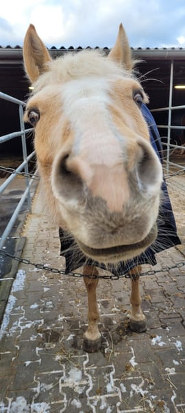 Our dear Holly is a mare with a truly special personality. She is friendly, sensitive, and consistently displays a calm demeanor in everyday handling. Not spooky, clear-minded, and very people-oriented—she is a loyal soul who wants to please her handler. From the beginning of her breaking-in, she has been cooperative and brave. She spent three months in training over the summer of 2025 and is currently being further educated by me (Trainer B in Western riding). She particularly enjoys being out on the trails—she explores eagerly and relaxed, both alone and in a group. Holly needs some time to warm up to new people, but once she has built a bond with her handler, she shows full trust and works with motivation. For someone who offers her this trust, she will become a wonderful horse with a big heart. I have also used her a bit for riding lessons, and she is becoming increasingly confident, even with other riders. In the summer of 2025, she was diagnosed with osteoarthritis in her tarsal joint. However, this has now ossified, and there are currently no issues. She has always been sound. She brings so much joy to life and is suitable for leisure riders, for beautiful hours on the trail, but can also be ridden and further trained in the arena or indoor riding hall. We are looking for a loving home for Holly with people who have experience, patience, and a heart for special horses. If you are interested, we look forward to hearing from you and to a personal meeting! A suitable saddle and additional equipment can also be purchased.