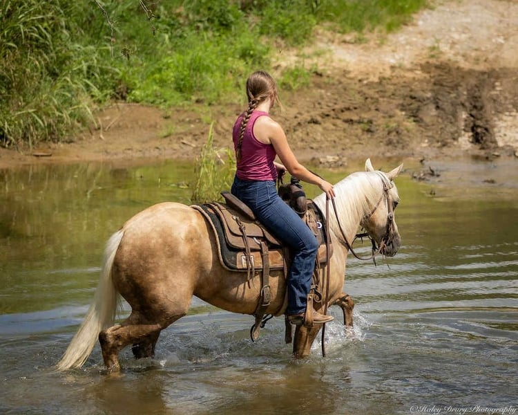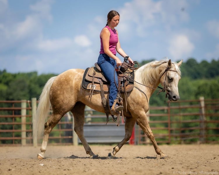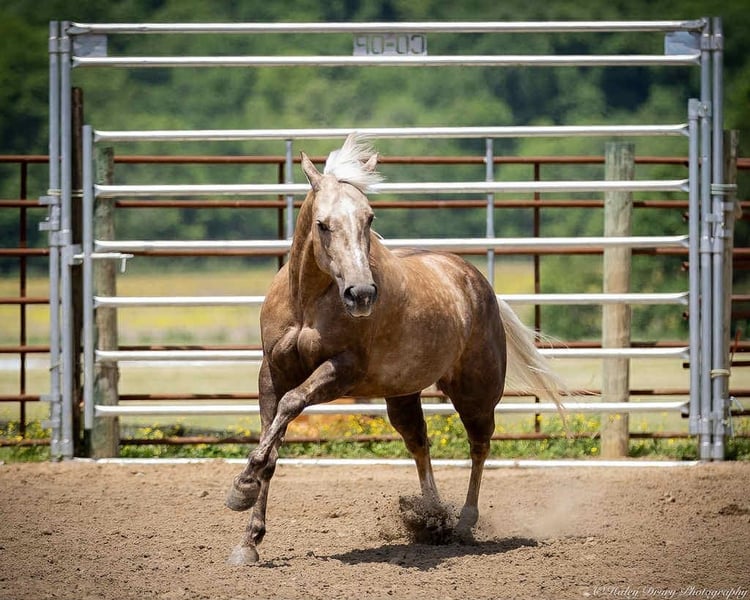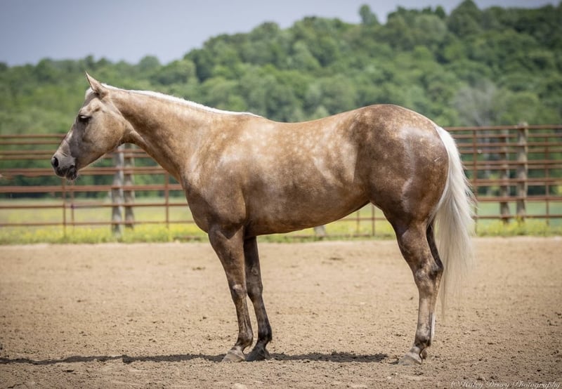 ⚔️ The HORSEMAN's Select ⚔️ Happening now thru MONDAY | JULY 28th - Available EXCLUSIVELY on HorseBid's website! For more details and to register visit: www.Horsebid.com CONSIGNOR CONTACT: Jamie Thomason 270-772-1706 LOCATION: Auburn, KY BREED: APHA REGISTERED: Yes REGISTERED NAME: CASHED N DIAMONDS COLOR: Palomino HEIGHT: 14 AGE: 8 GENDER: Mare Introducing CASHED N DIAMONDS, respectfully known as Harley! An 8 yr old, APHA, palomino mare, standing 14 hands. An own daughter of NRHA Million Dollar Sire, BIG CHEX TO CASH with LTE of $220,826 & Offspring Earnings of $1,342,000+. In the arena, out on the trail, heeling steers in the roping pen, or working on the ranch this pretty lady is not only there to get the job done, but to get it done with style! Harley has a beauty that is unmatched, paired with flawless conformation, and the training to be an asset in a variety of disciplines. Harley is soft in the face, travels both directions collected & on the correct lead. Moves laterally off leg pressure, has a smooth stop, and a nice turn around. On the trail, Harley rides alone or in a group, crosses water, downfall, and navigates rough terrain. She is no stranger to a days work. Has been taken out west to brandings, used to move cattle on the farm alongside working stock dogs, open & closes gates. She’s quiet in the roping box, scores well, has quick speed that would easily transition to breakaway or the barrel pattern. Truly a versatile horse! If you're searching for the perfect partner…..whether it's a horse for the arena, a standout in the roping pen, a fun trail companion to explore the great outdoors, or a mare with the pedigree, presence, and conformation ideal for a broodmare—Harley is your girl! With her versatile talent, proven bloodlines, and eye-catching looks, she checks all the boxes for riders and breeders alike. Don't miss the chance to add this exceptional mare to your barn! For any other question or if you would like to meet Harley in person before adding her to your family, feel free to reach out!