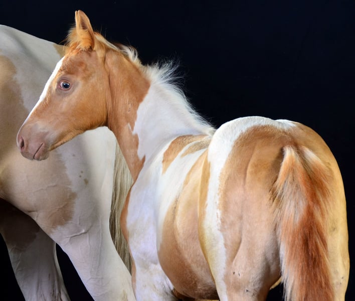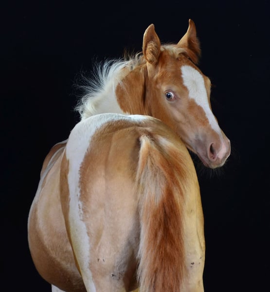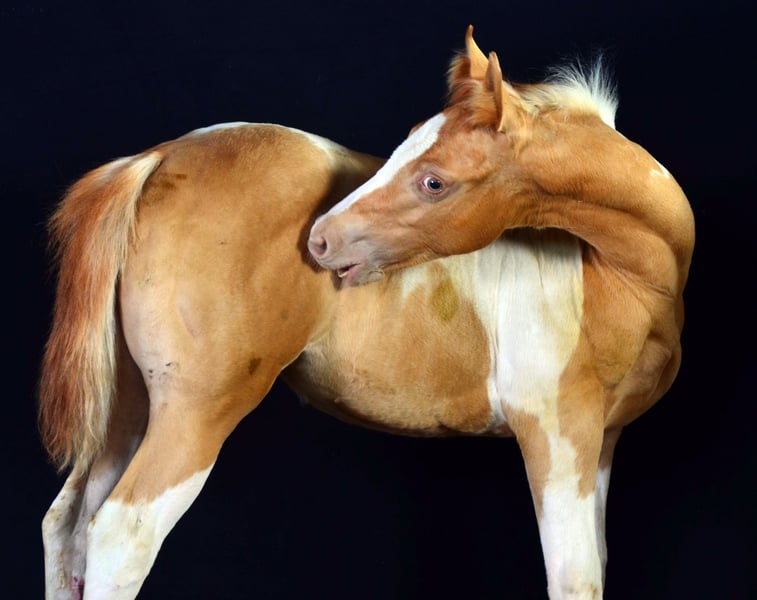 Babatte ist ein Paint Horse Stutfohlen in Gold Champagne, reinerbig für das Champagne Gen. Sie wurde auf der PHCG Zuchtshow vorgestellt, und erhielt die geniale Gesammtnote von 7,95. Sie ist 7 Panel N/N ud hat natürlich volle Paint Papiere. Sie wächst artgerecht in einer grossen Herde auf. Ihr Charakter ist aus Gold, und sie will immer gefallen. Gekuschelt werden und sucht die Nähe des Menschen auf immer sanfte weise.