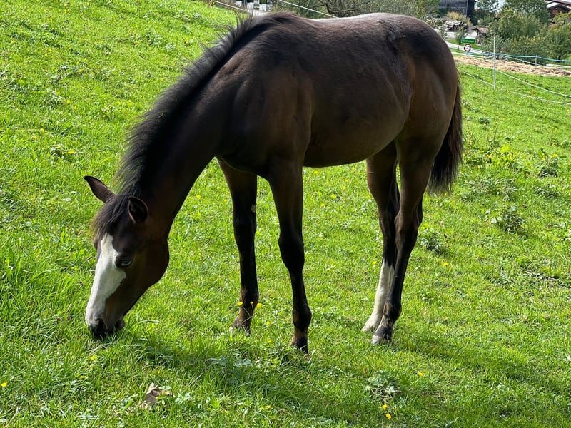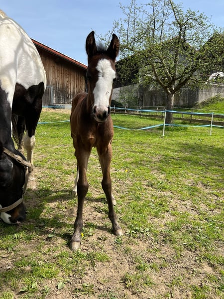 **Verkaufsanzeige: Paint Horse Stute** Zum Verkauf steht eine wunderschöne Paint Horse Stute, geboren im Jahr 2025. Diese elegante Dunkelbraune eignet sich hervorragend für den Westernsport. Unsere Stute besticht durch ihren freundlichen Charakter und ihre hohe Lernbereitschaft. Sie ist gut erzogen und zeigt bereits vielversprechende Ansätze in der Westernreiterei. Mit ihrem ausgeglichenen Temperament ist sie sowohl für erfahrene Reiter als auch für Einsteiger geeignet, die viel Freude am Reiten haben möchten. Sie ist regelmäßig geimpft, entwurmt und besitzt einen aktuellen Gesundheitscheck. Mit pass und Papieren prämienfohlen Bei Interesse oder weiteren Fragen stehe ich Ihnen gerne zur Verfügung. Besuchen Sie uns und lernen Sie diese außergewöhnliche Stute persönlich kennen!
