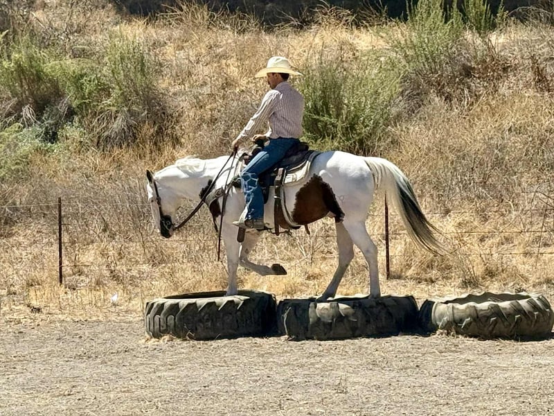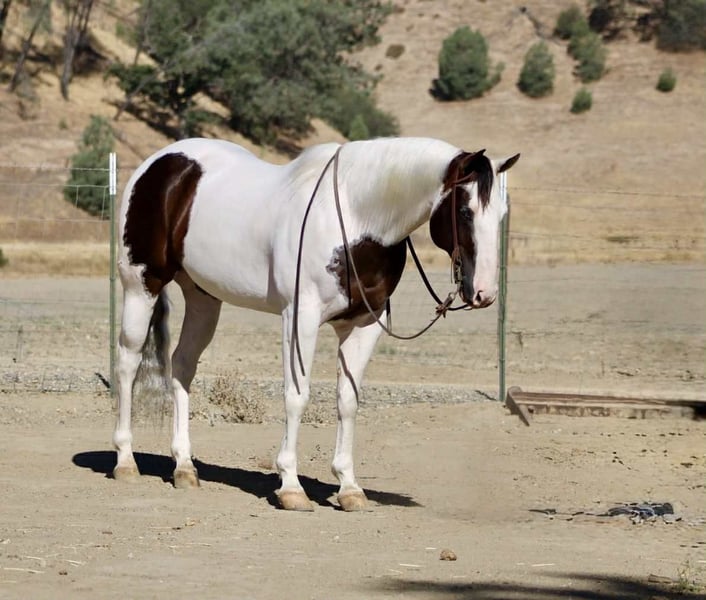 ONLINE AUCTION Place your bids at www.PlatinumEquineAuction.com Starting Bid $3500 Auction ends August 24th, 2025 Need a new saddle? Check out White Rock Saddles on our website or Facebook Aye Aye Pirate – The Treasure You’ve Been Hunting For! Drop anchor—your dream horse just surfaced. Meet Aye Aye Pirate, or just Pirate to his crew—a 10-year-old, 14.3-hand paint gelding with the kind of ride, temperament, and good looks that make him a rare treasure. Pirate is truly one of the gentlest, most dependable horses we’ve had the pleasure of offering. He’s kind, patient, and incredibly forgiving—making him an ideal choice for riders of all levels. Whether you’re brand new to horses, getting back in the saddle after years away, or just want a steady mount you can trust in any setting, Pirate will take care of you every step of the way. On the trail, he’s as solid as they come. He’s confident, sure-footed, and careful without being sluggish. He’ll navigate water crossings, rocky terrain, steep hills, narrow bridges, downed trees, tarps, tires, and pool noodles like a seasoned scout. And he does it all without hesitation or drama—ears forward, eyes soft, and completely tuned in to his rider. Pirate doesn’t just tolerate the trail—he thrives on it. He’s also a total dream to ride down the road. Cars, trucks, barking dogs, bicycles, strollers—you name it—he’s seen it and walked right on by with a quiet confidence that’s hard to find. He’ll go out alone or in a group and never loses his cool. In the arena, Pirate keeps things simple and fun. He lopes off soft, neck reins easily, stops off your seat, and moves right off your leg. He’s smooth, correct, and easy to ride—even for beginners—but he’s broke enough to keep seasoned riders smiling. Need a little style? He’ll roll into a smooth spin that’ll make you grin. He’s been used on the ranch too—gathering cattle, opening gates, branding and roping. But what truly makes Pirate special is his heart. He’s got that rare “babysitter” brain paired with enough buttons to still be enjoyable for a confident rider. He’s sweet without being dull, willing without being pushy, and always ready to meet you at the gate. In the barn, he’s just as easy. Catches without a chase, saddles and bridles without a fuss, great for the farrier, and loads and hauls like a seasoned traveler. Stall or pasture, alone or with others—he’s happy wherever you put him. So if you’ve been searching for that once-in-a-lifetime gelding—the one you can trust with your kids, your grandma, your cowboy friend, or just yourself on a solo sunset ride—Pirate is the one you’ve been waiting for. Located in Paicines, CA 📞 Call or text Dina at Longhorn Ranch – 831-537-1915. ONLINE AUCTION Place your bids at www.PlatinumEquineAuction.com Starting Bid $3500 Auction ends August 24th, 2025 Need a new saddle? Check out White Rock Saddles on our website or Facebook